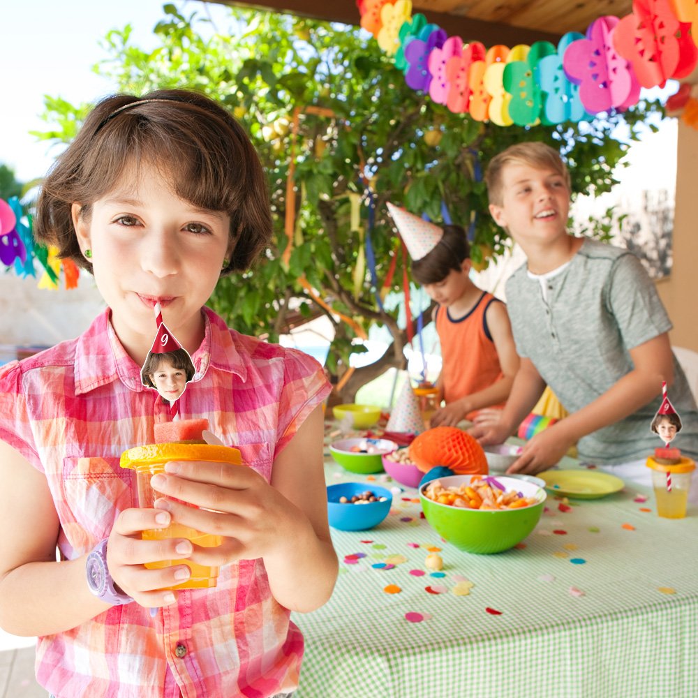 As party decorations, these straws are excellent. They can be placed in drinks on the party table, adding a personalized and decorative element to the beverage setup. They also serve as a conversation starter, as guests will be intrigued by the unique design and will likely enjoy seeing their faces or their friends' faces on the straws.