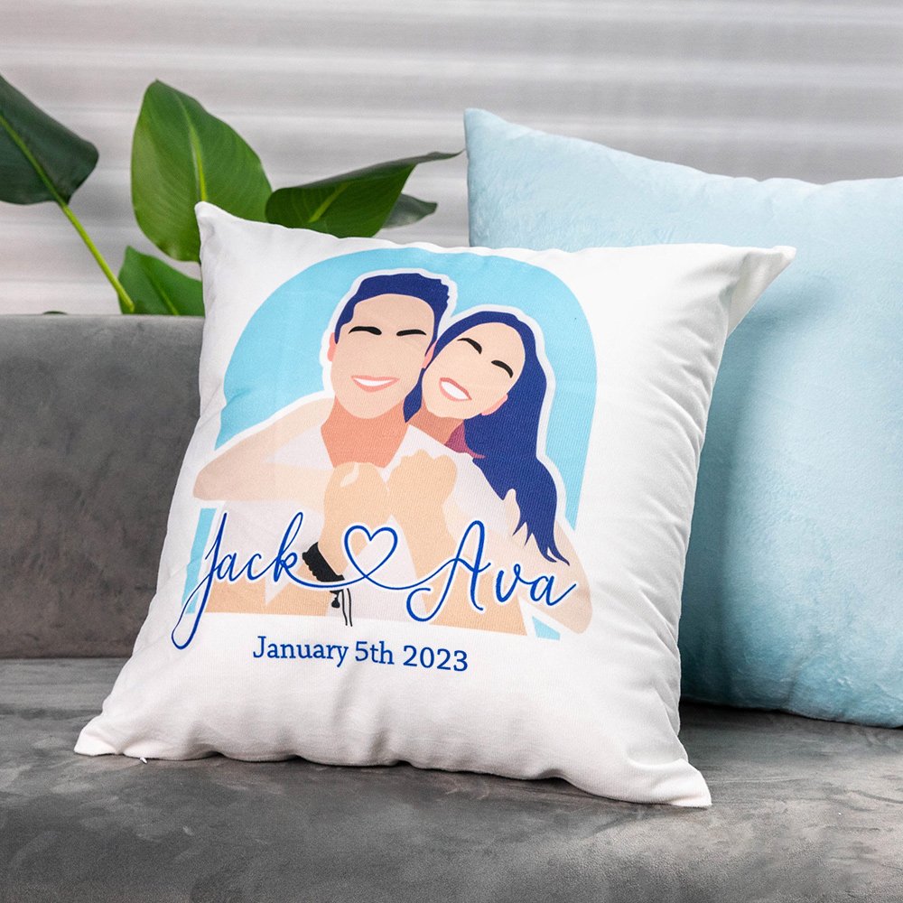 You need to upload a high-quality picture of you and the person you like to ensure that we can make a perfect faceless portrait for you. In addition, you can also customize the name and date on the throw pillow cover. The only thing to note is that the number of characters in the name must be limited to 13, and the date format must be provided in the format of month + day + year (January 5th 2023).