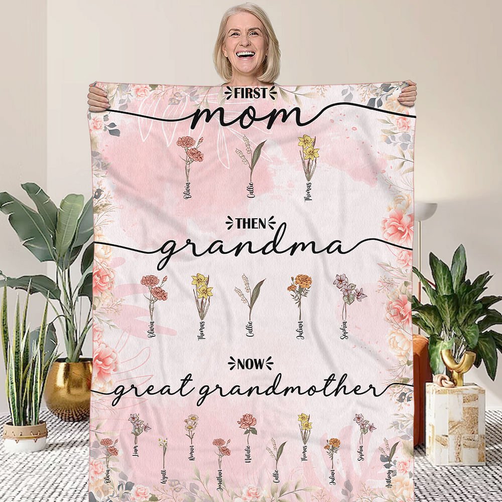 This blanket features a birth flower pattern, with customizable names and titles, to show the transformation of a woman's family identity and the close connection between her family. This is not only a tribute to the individual's journey in life but also the selfless dedication and love of each female character in the family.