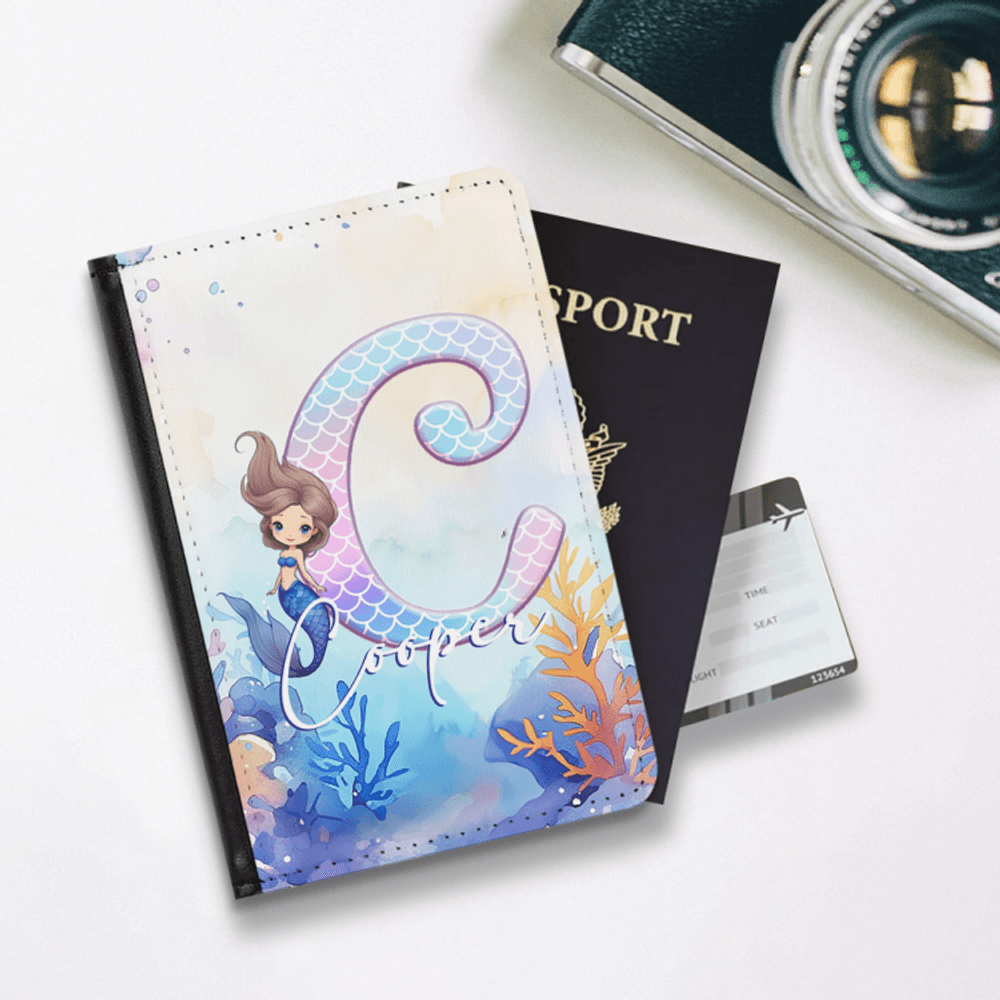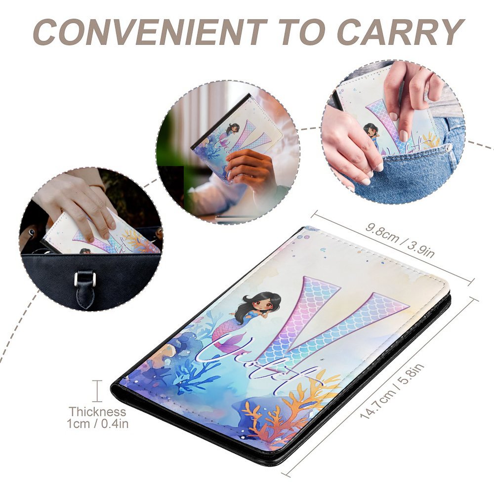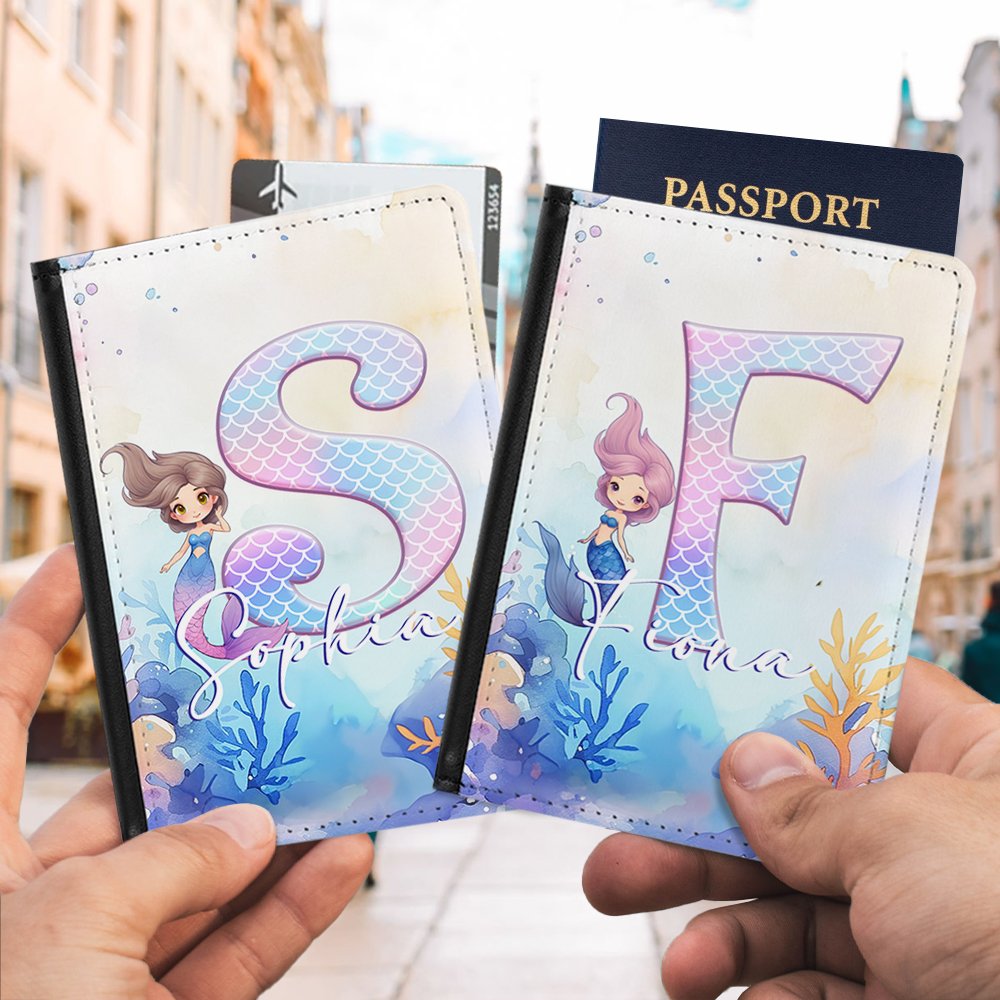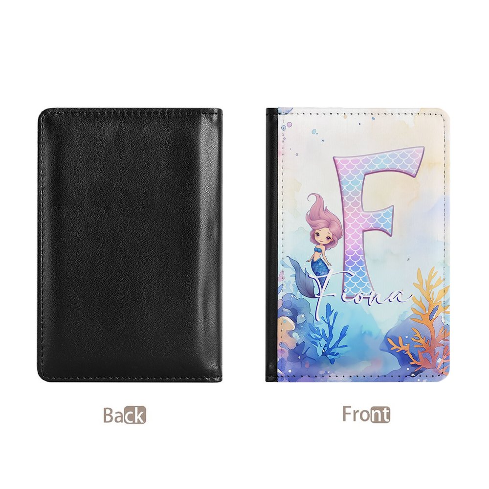 Personalized Fantasy Mermaid Princess Underwater World Leather Passport Holder with Name and Initial Travel Essential Birthday Gift for Mermaid Lovers