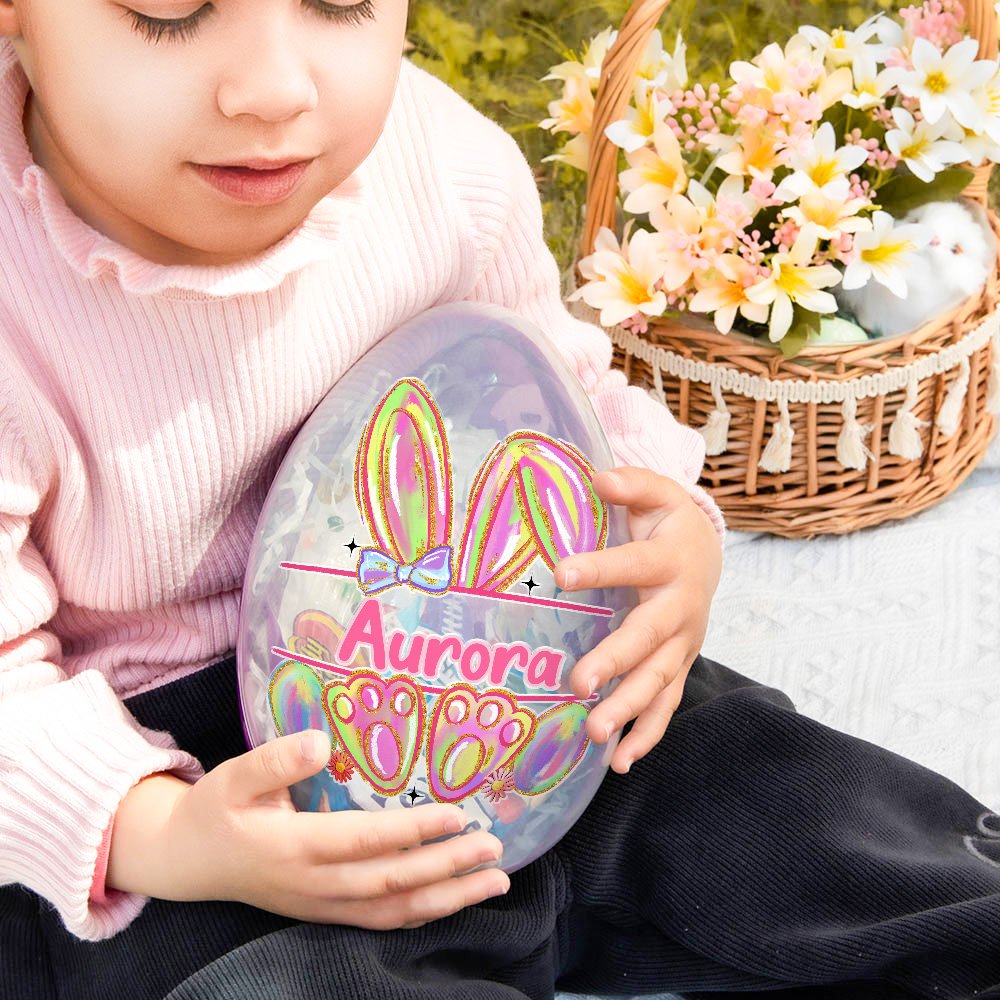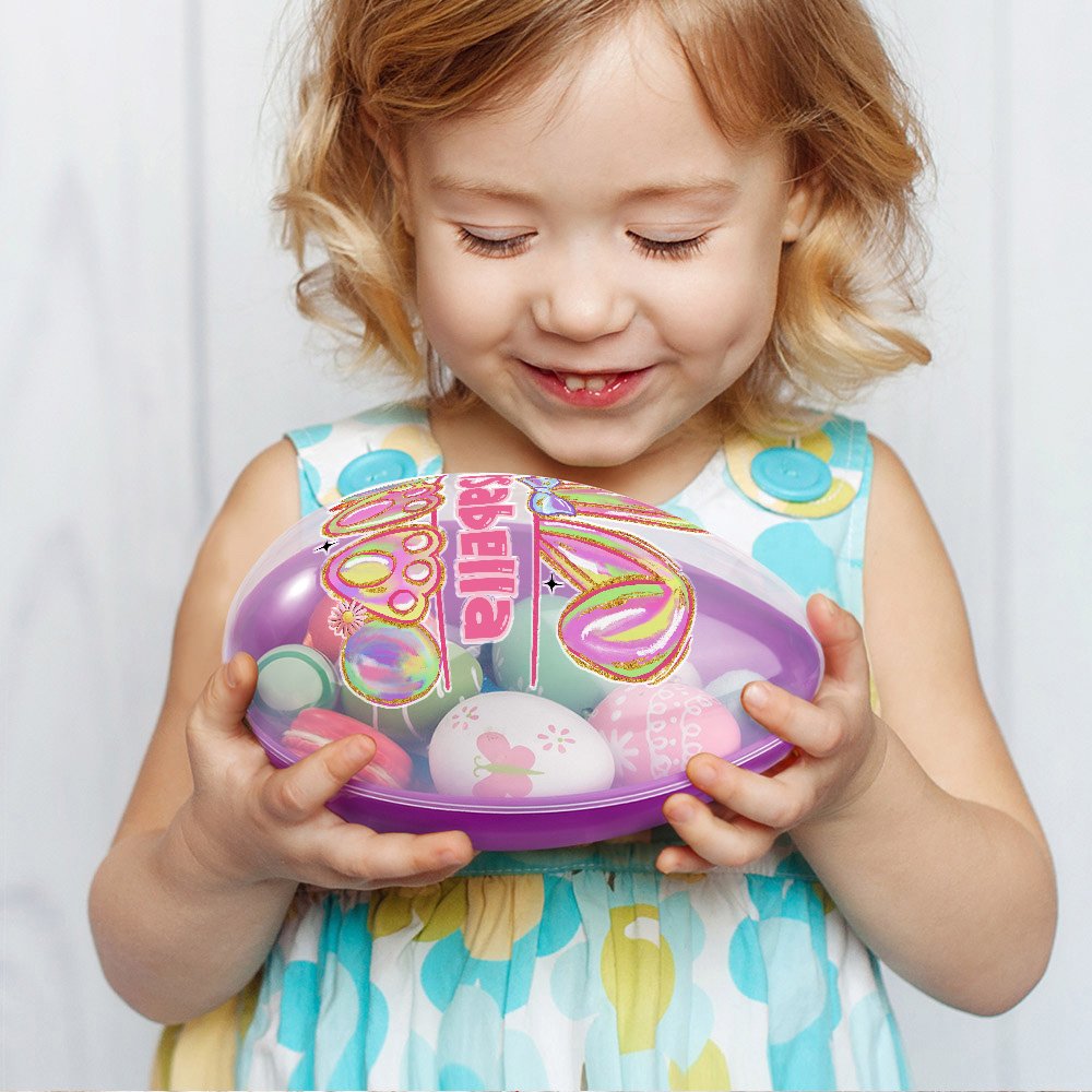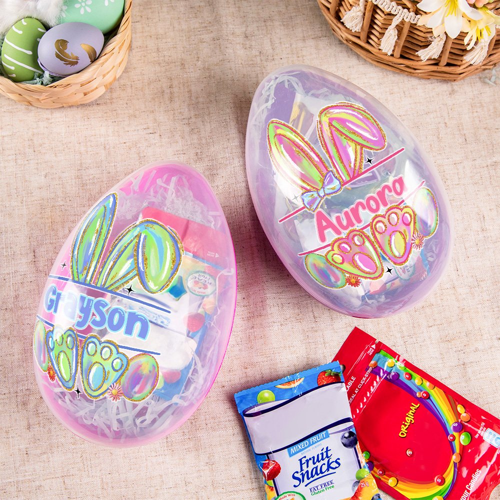 Our jumbo Easter eggs are printed with carefully drawn a colorful bunny ear and footprints, with a faux glitter effect on the edges, and a customizable name, which not only shows the joyful atmosphere of Easter but also incorporates personalized customization elements, bringing a pleasant visual experience every time you use it. 4 different jumbo Easter egg colors give you more choices.