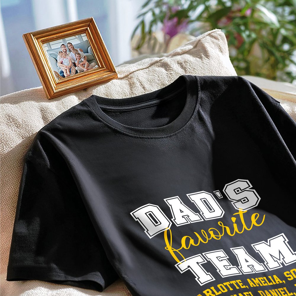 Featuring a "Favorite Team" theme, this T-shirt can be customized with the names of family members, making it unique and creating a warm, vibrant family atmosphere.