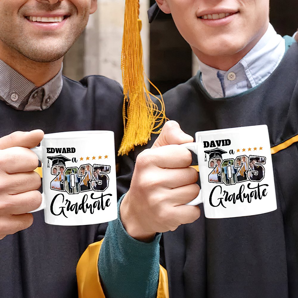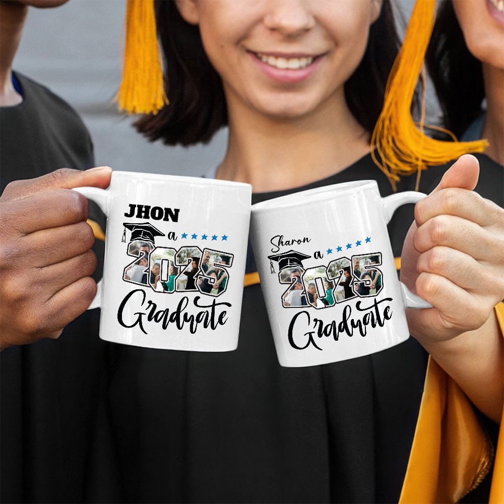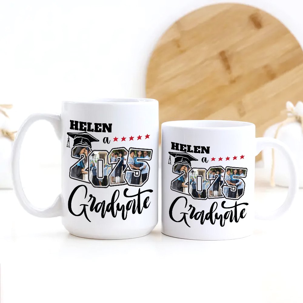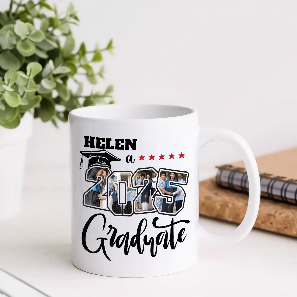 Personalized Five Star 2025 Graduate Photo Collage 11 oz 15 oz Ceramic Coffee Mug with Name Graduation Keepsake Party Gift for Graduates