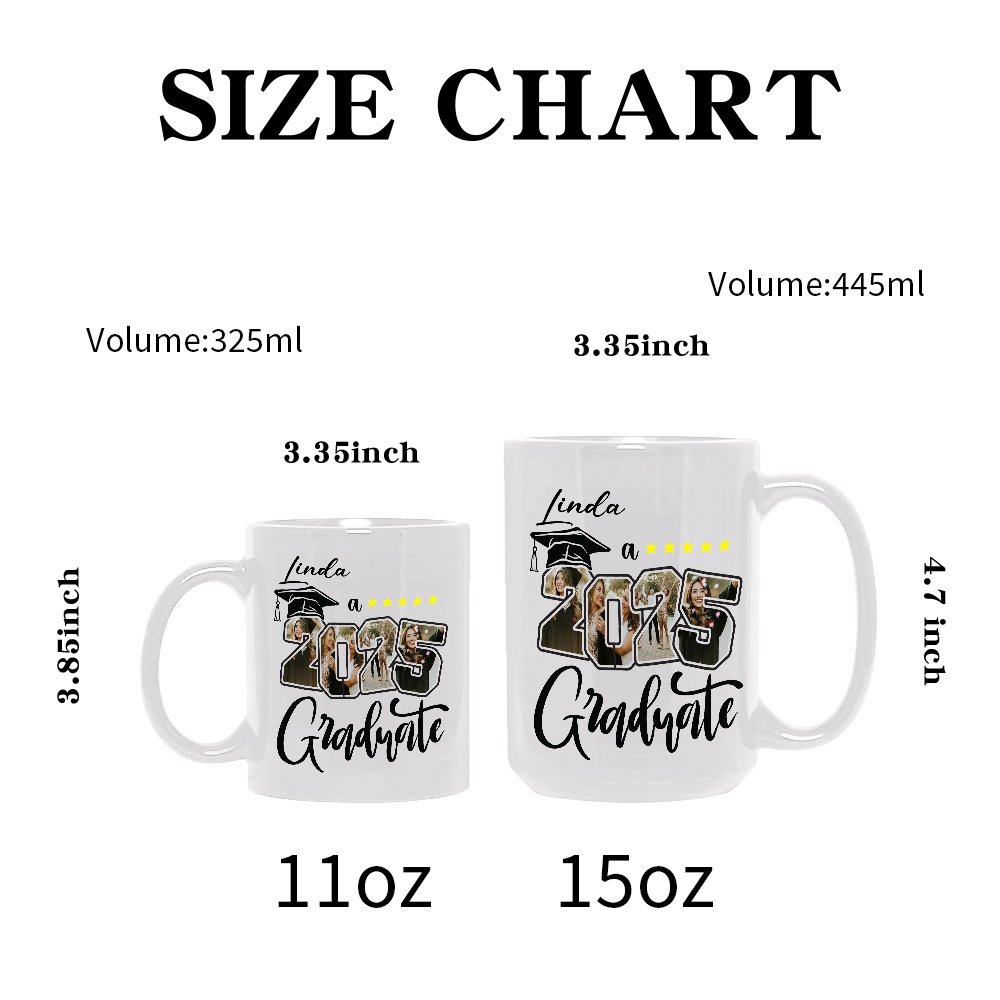 The name of the graduate can be printed on the top of this mug, and 4 photos can be placed in the "2025" number frame in the center, making each mug unique. In addition, the color of the five-star on the mug can be customized according to the graduate's subject, which cleverly reflects their professional background. These design details make this mug not only an everyday item but also carry deep emotional and commemorative value.