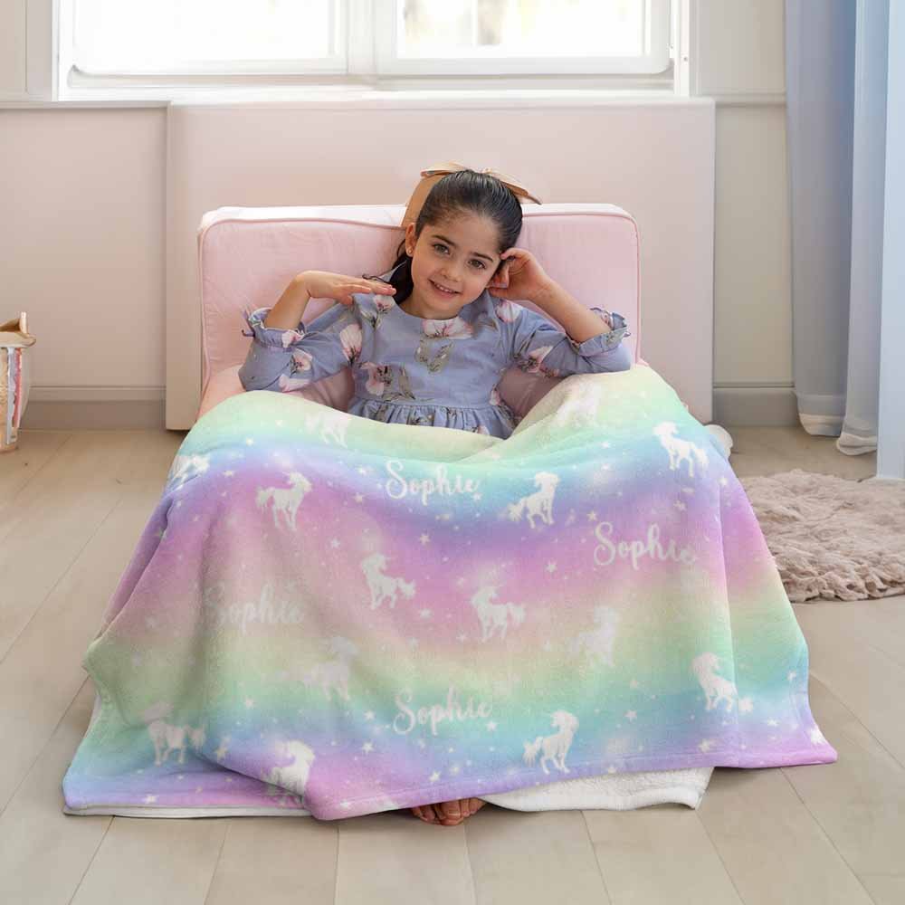 Soft and a comfortable throw blanket for kids has lovely dinosaur, and fantasy unicorn patterns, is a good companion for the boys' and girls' everyday lunch break.