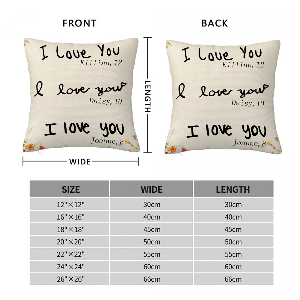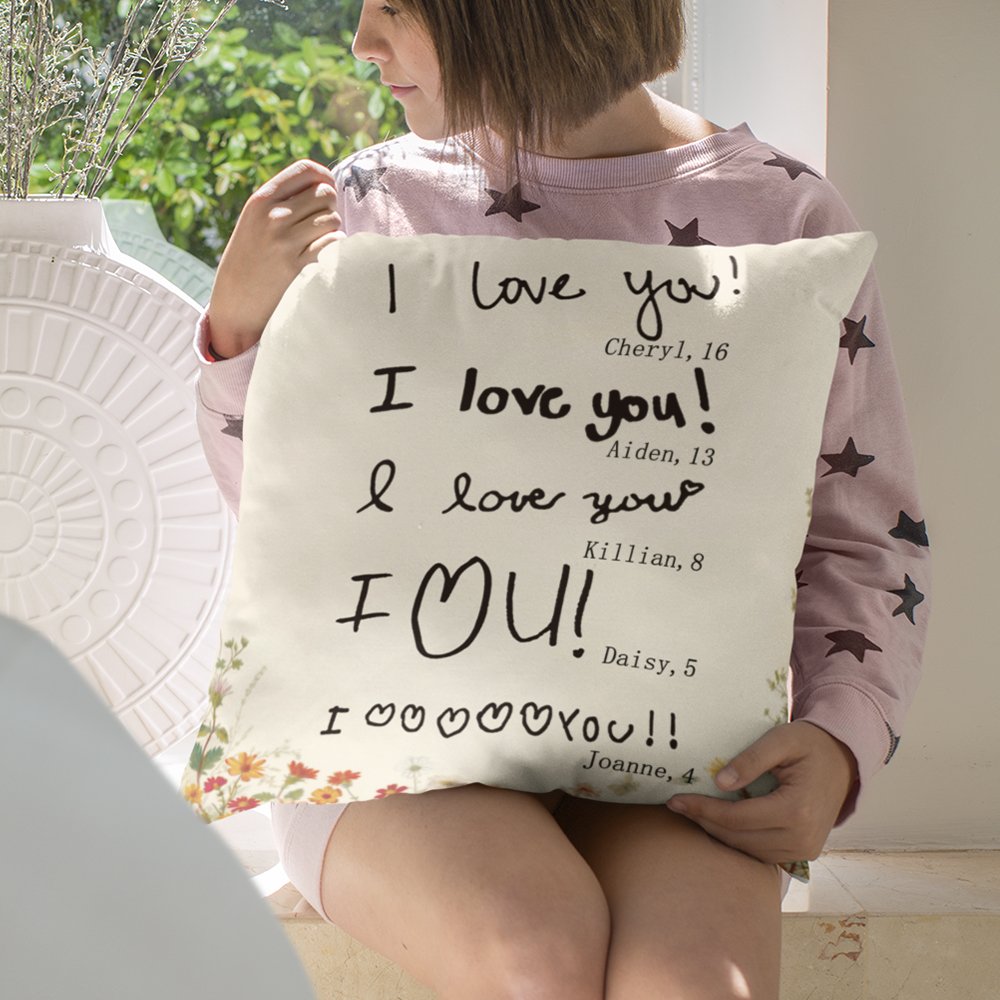 This pillow cover features a Mother's Day theme with colorful floral patterns printed around the edges, adding a touch of childish charm and warmth. Most importantly, this pillow cover allows you to upload 1-7 handwriting photos, as well as your children's names and ages, capturing their love for you and making the pillow even more special and personalized.
