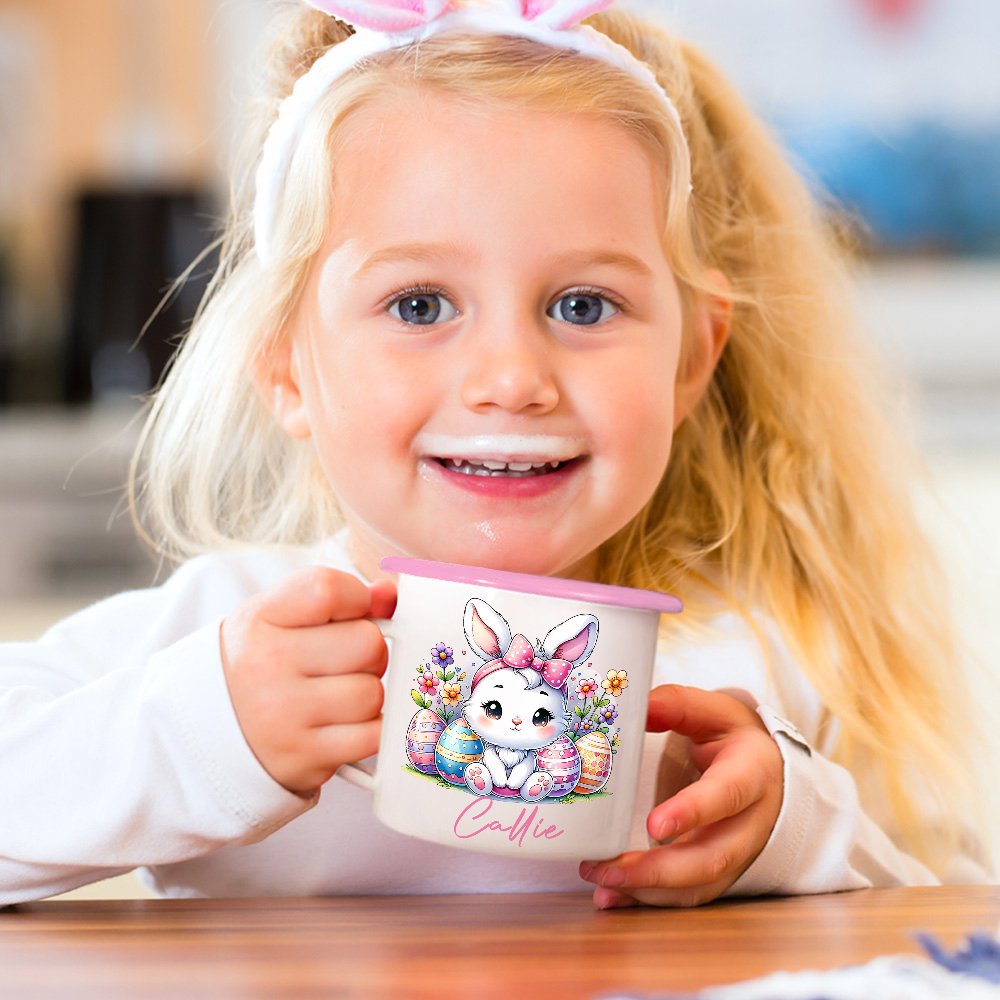 This enamel mug is printed with chicks and rabbits in different cartoon images, and each image is equipped with unique decorations such as flowers, eggs, etc., which is full of childlike fun and Easter atmosphere. There are 22 patterns to choose from. You can also customize your name on the mug to make it more exclusive.
