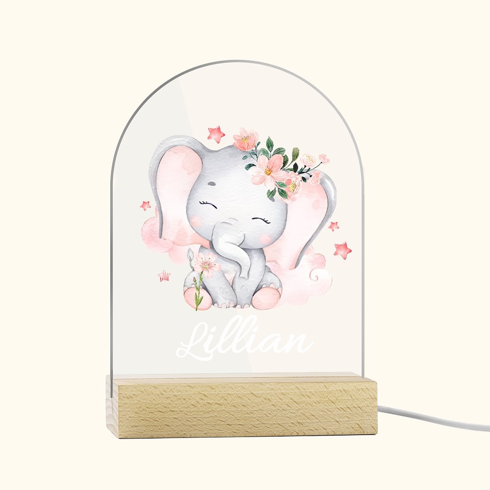 This acrylic plaque features a cute floral elephant motif and comes with many different elephant shapes to choose from. You can also customize your child's name on it to make it even more special. In addition, the plaque has four different light colors, which you can adjust according to your preferences.
