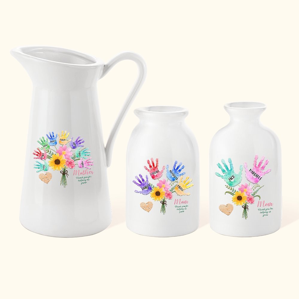 This personalized ceramic vase is a thoughtful gift that shows appreciation and gratitude for the love and guidance of moms. Each palm carries the name of a loved one, creating a special connection and reminder of the growth and support shared. It's a gift that will touch their hearts and be treasured for a lifetime.