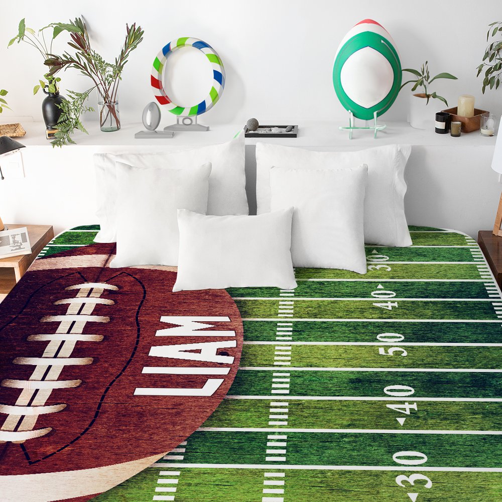 Designed for football fans, the iconic football grass field element is integrated into the overall design of the blanket, which is very creative and full of sports atmosphere. You can create your own "team blanket" by customizing your name and number. Whether it represents the team you support or shows your love for f is uniqueootball.