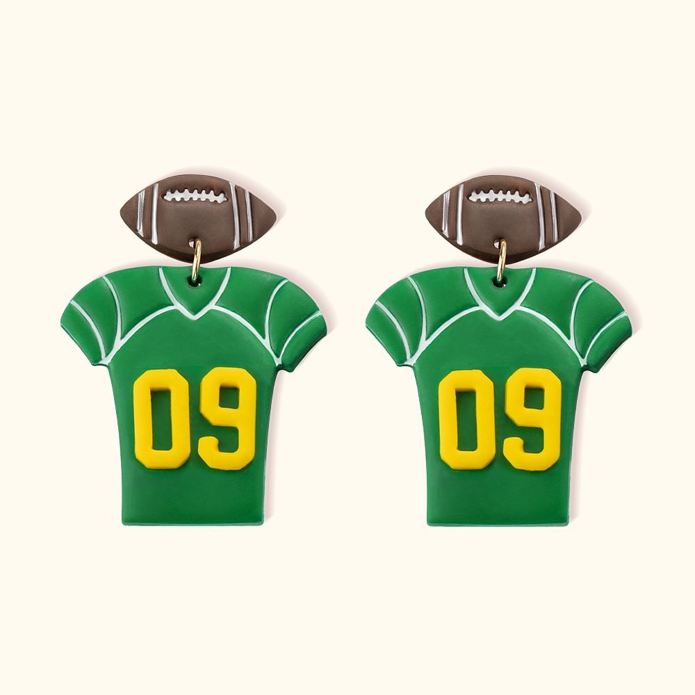 Material: | Jersey&Football - Clay; Earring Post - Sterling Silver Needle; Earring Back - Silicone |