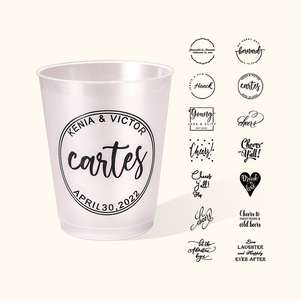 Our frosted plastic cups can be customized with the name of the bride and groom, along with the date of the special occasion. With the option to choose between 12oz or 16oz, you can select the size that best suits your needs.This personalization adds a unique to your bridal shower, making it an unforgettable experience for everyone involved. Each cup will serve as a keepsake for your guests, reminding them of the joyous celebration whenever they revisit it.