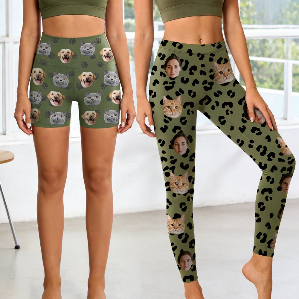 These leggings are available in two styles β€” full-length and shorts. They support customization with fun personal photo portraits or adorable pet avatars, perfectly blending comfort with personality. Playful accents like hearts and paw prints add a warm and lively charm, making every wear feel uniquely yours.
