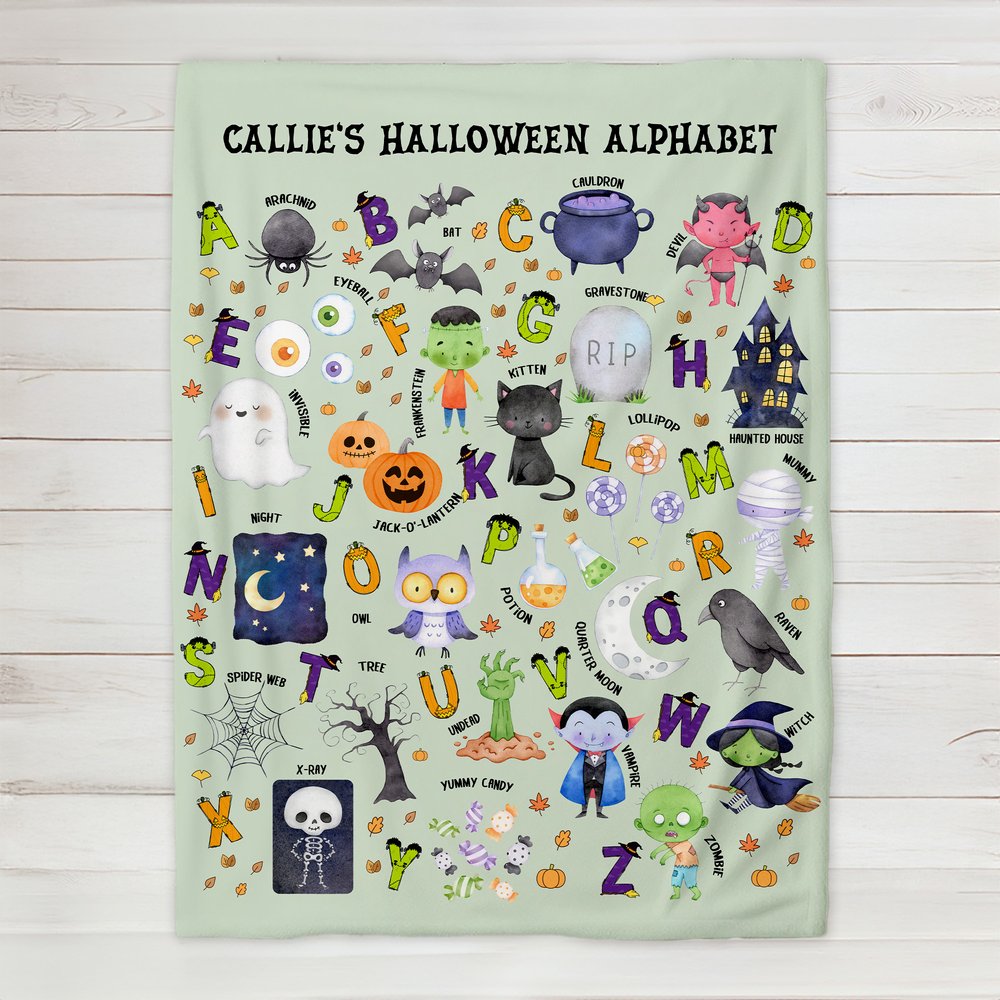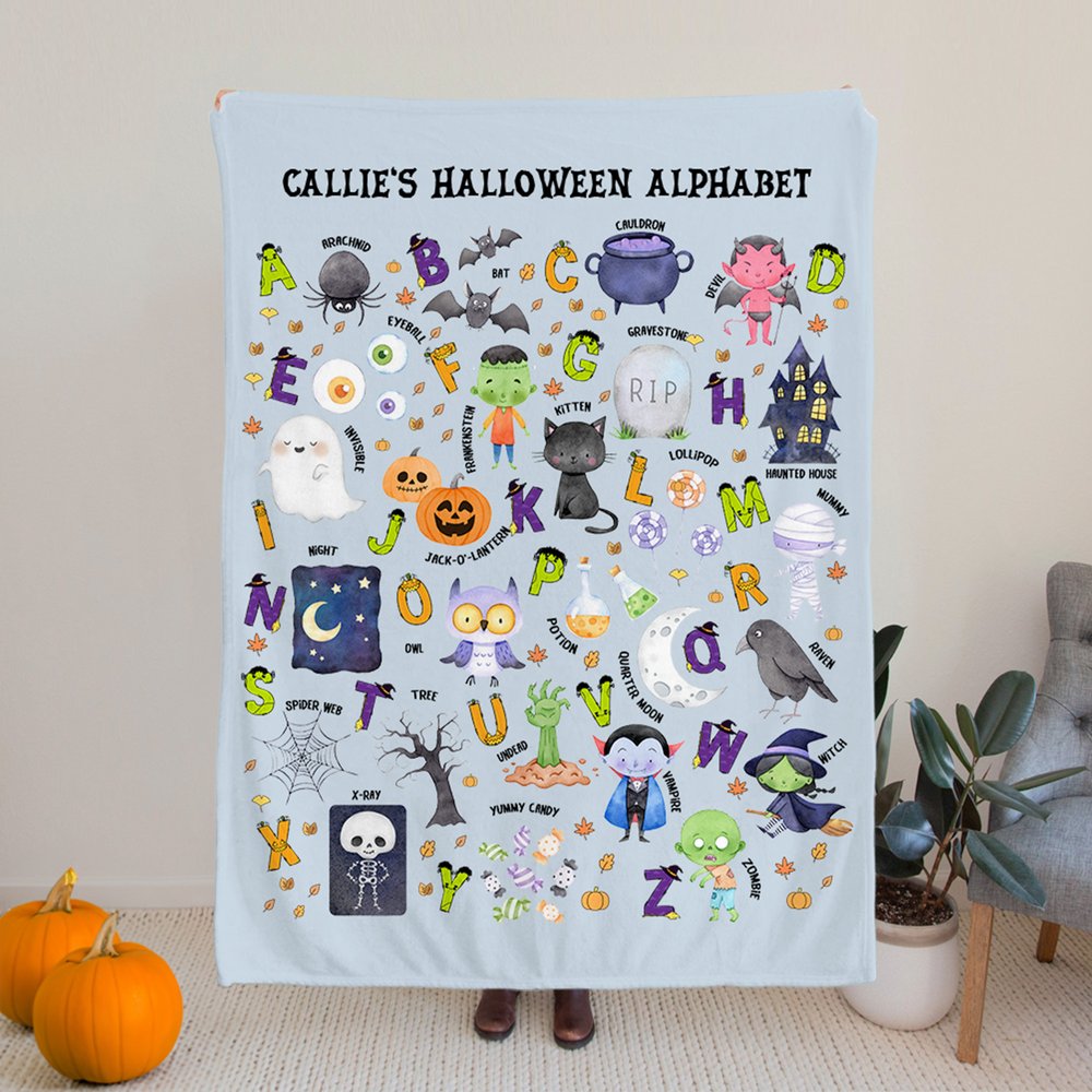 With Halloween-themed letters as the core design element, this alphabet blanket features bright and vibrant colors, exuding a playful and festive atmosphere. It can also be customized with your child's name, making the blanket both uniquely Halloween-themed and a personalized item for your child. This easily sparks young children's interest in the holiday, while the letter design also has educational significance.