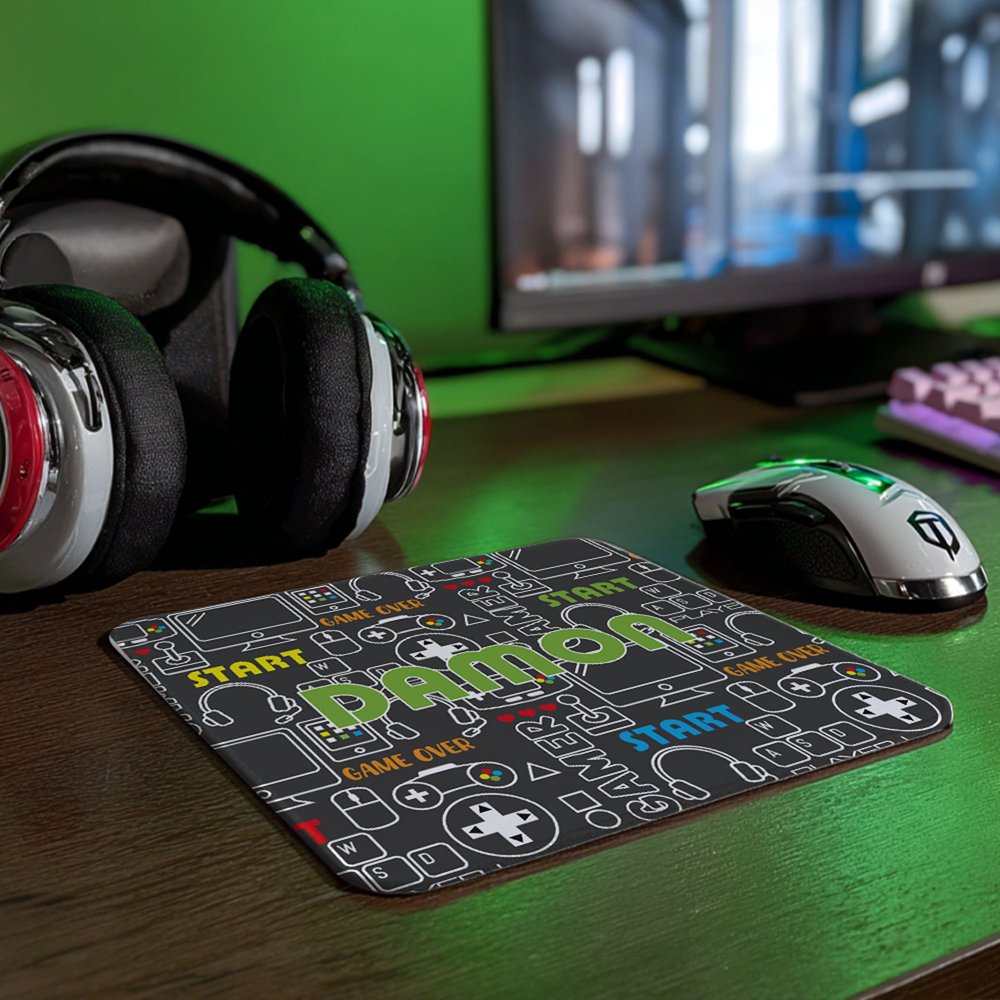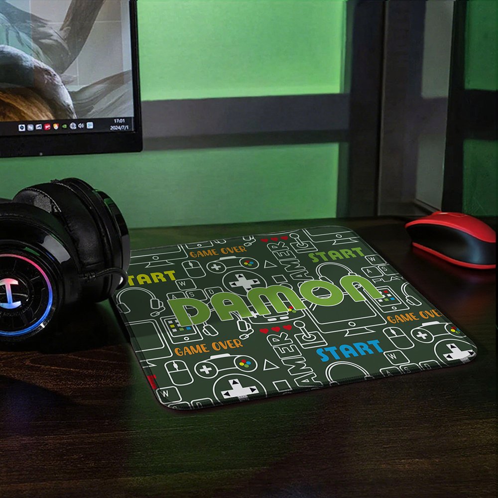 This mouse pad cleverly incorporates a variety of gaming elements, from controllers and buttons to classic symbols like "START" and "GAME OVER." Its vibrant colors and bold lines instantly ignite gamers' passion. It also offers personalized name customization, making each mouse pad uniquely yours.