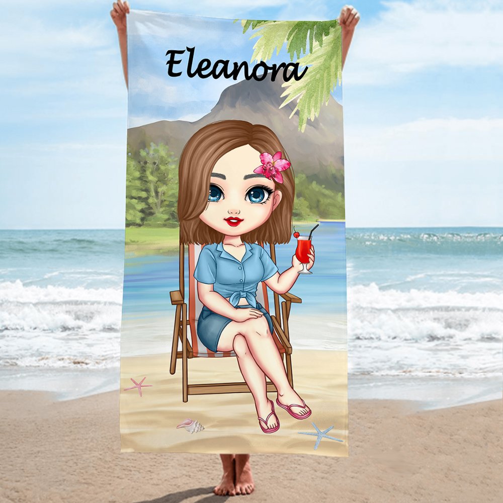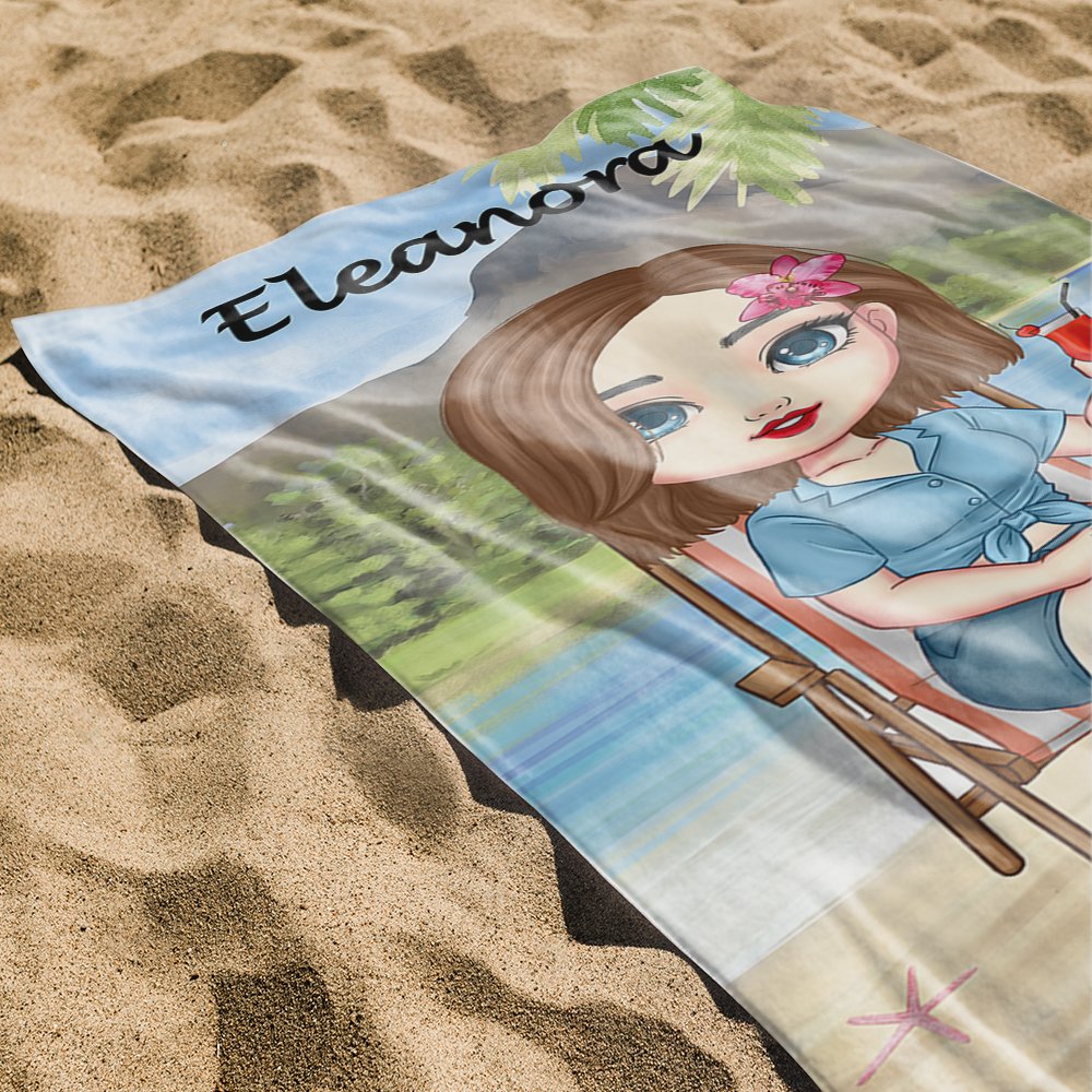 This beach towel can be customized with the gift recipient's name and cartoon appearance, adding a unique and personal touch to it.