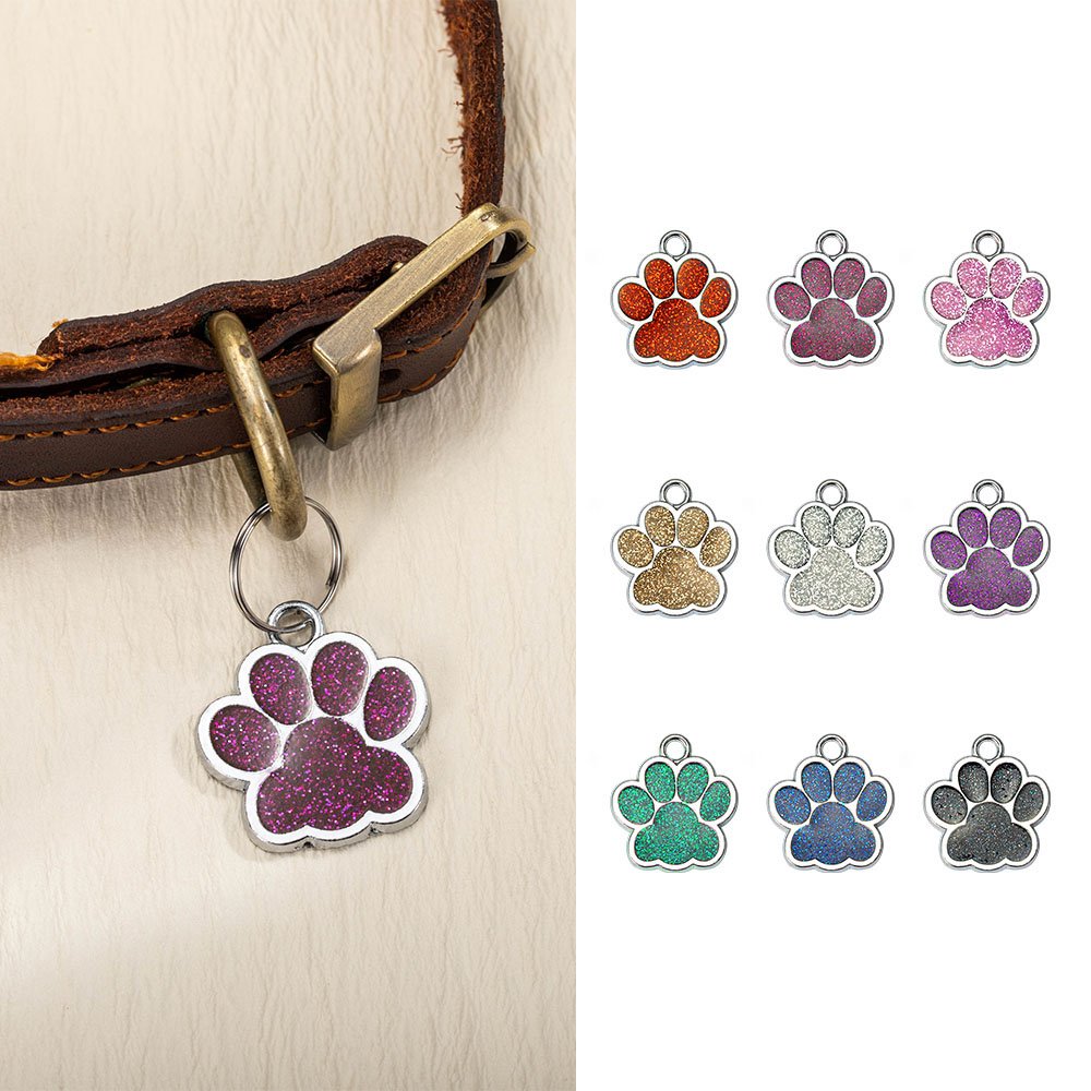 Personalized Glitter Paw Print Pet ID Tag Dog Cat Name Ornament Pet Loss Prevention Essential Gift for Pet Owner