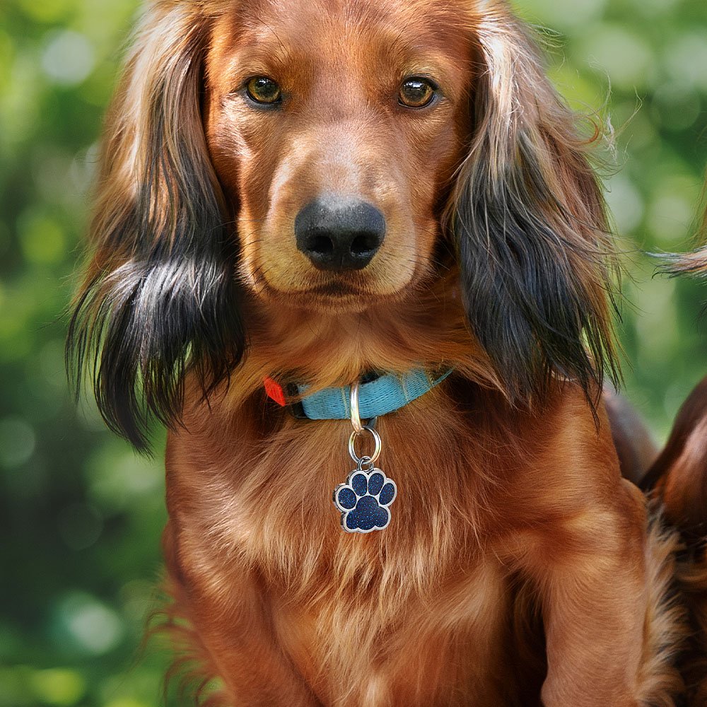 The vibrant glitter accents give this ID pet tag a playful and eye-catching appeal, making your pet stand out from the crowd. It is available in various glitter colors, allowing you to choose the one that matches your pet's personality or your own personal style. The cute paw print shape adds a touch of interestingness, making it a chic accessory for both dogs and cats.