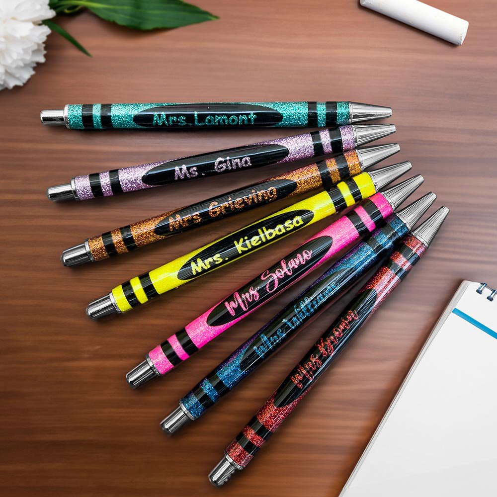With our glitter pen crayon pens, you no longer have to worry about your pen being mistakenly taken or lost. You can customize the name on the pen, and the distinctive design ensures that your pen is easily identifiable, making it less likely to be misplaced.