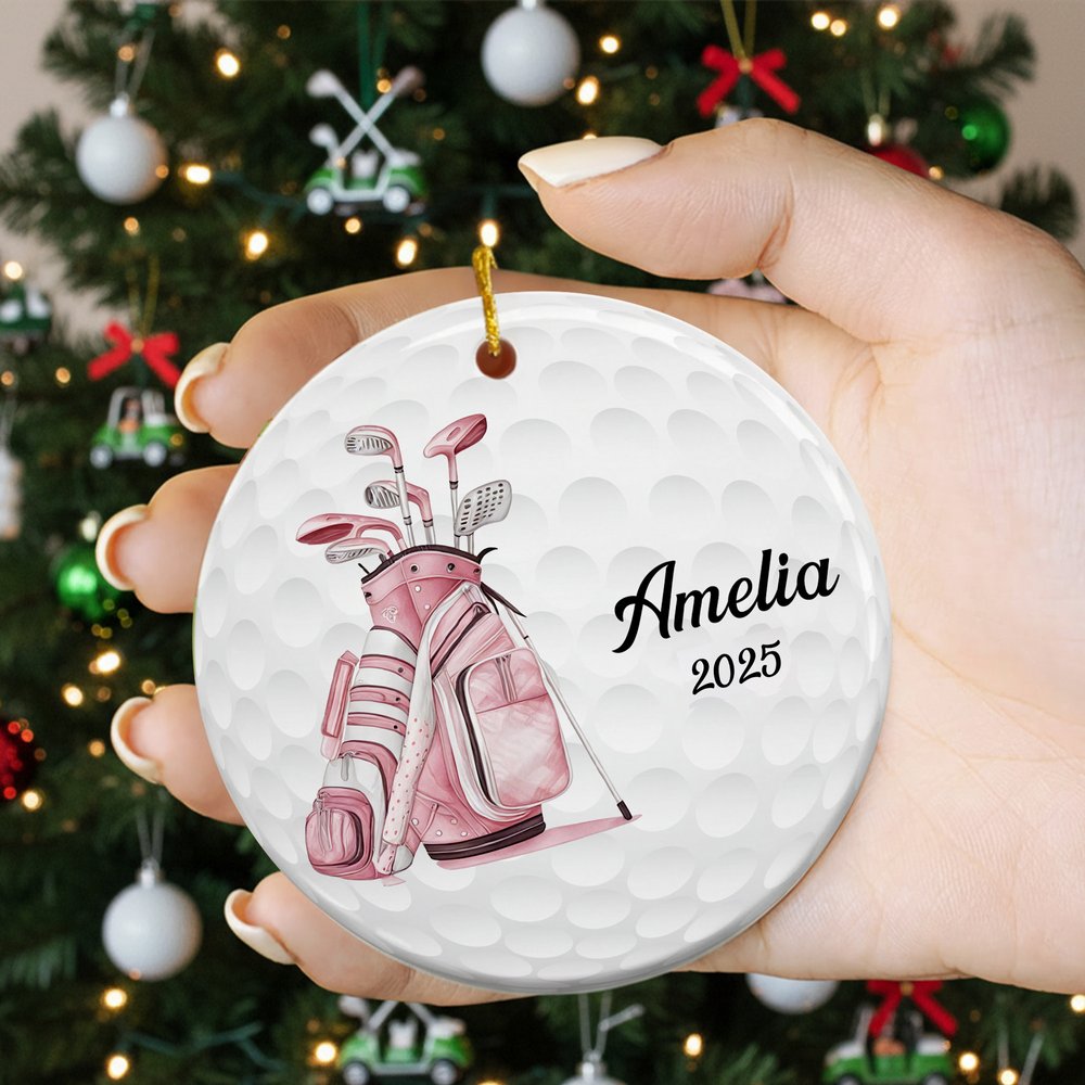 Personalized Golf Bag Design Ceramic Ornament with Name and Year Tree Decor Christmas Gift for Golf Lovers Golfers