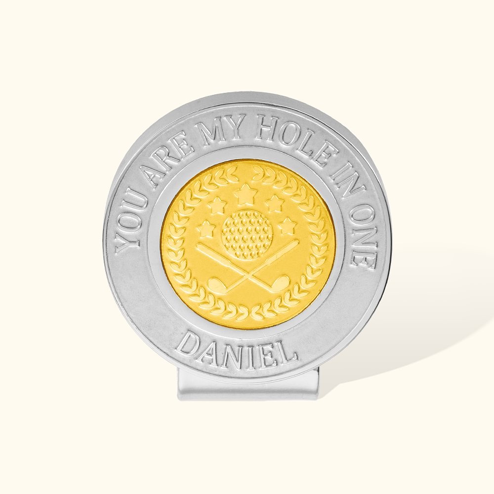 A golf marker is to mark the place on a putting green where a golf ball is lifted from. This product is inspired by coins and medals, aiming to give your favorite golf lover an unforgettable gift. The embossed texts add not only personality but also a touch of delicacy. The custom golf ball marker features a stainless steel magnetic hat clip that fits along the brim of a hat.