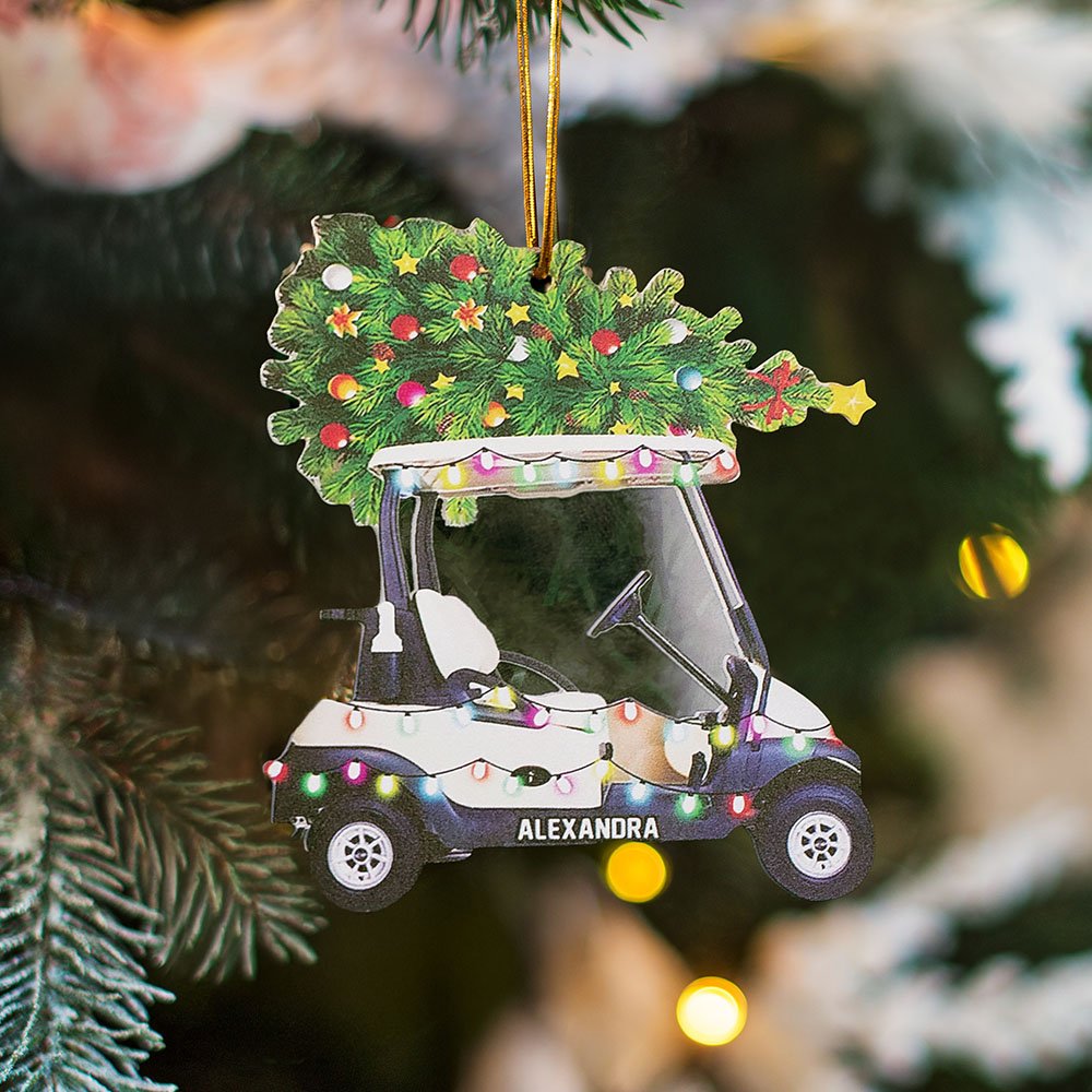 With its festive golf cart design adorned with a Christmas tree and colorful lights, this acrylic ornament brings a touch of holiday cheer and whimsy to any Christmas tree. Customizable with a name or special message, this ornament becomes a unique and cherished keepsake that captures the season's spirit.