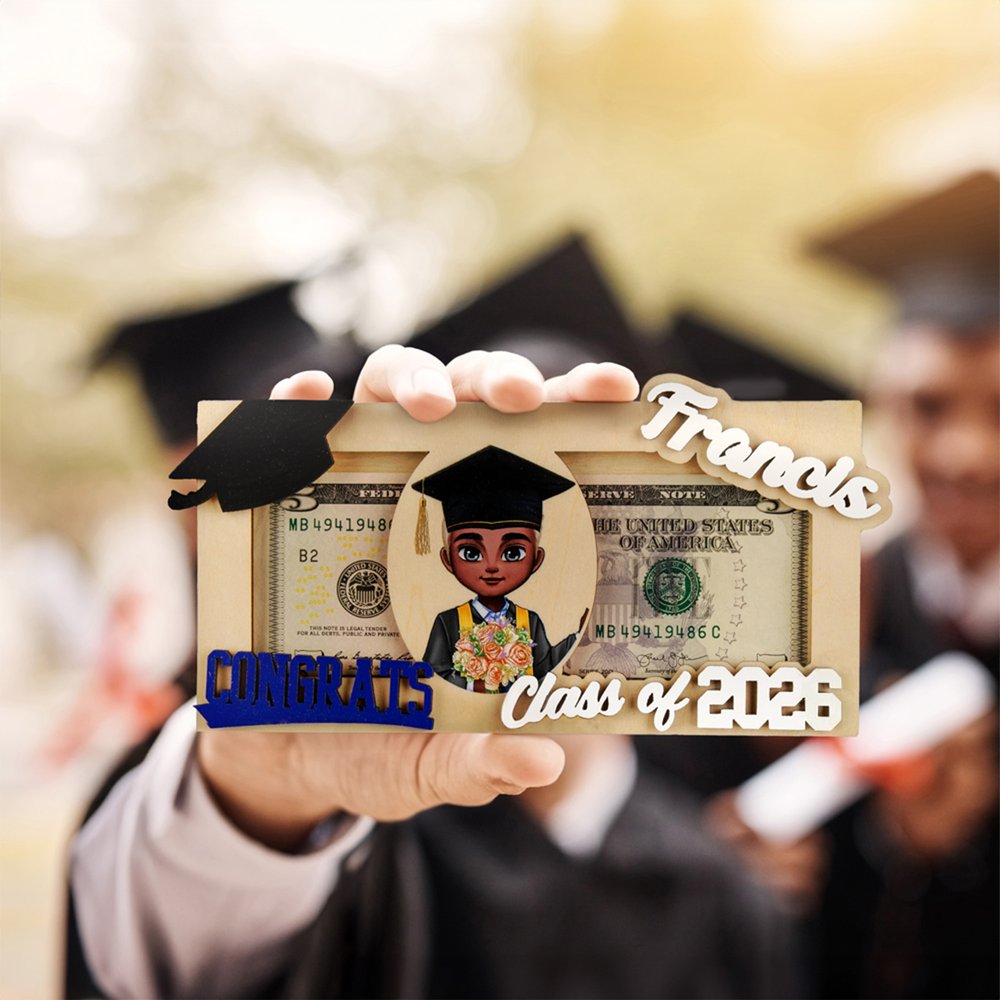 The thoughtful design includes a slot where money can slide easily between two wooden blocks, providing ample space for bills or checks and safely storing standard-sized bills. It is also a stylish decoration that can be placed in a prominent position in the graduate's home or office. Its compact size and flexible design can be placed on a desk, shelf, or even a bookcase, making it a practical and sentimental piece.