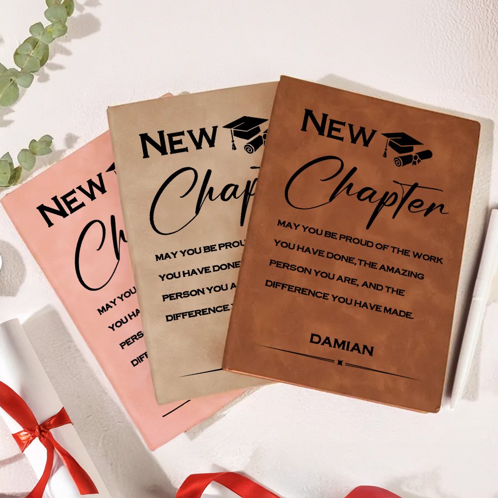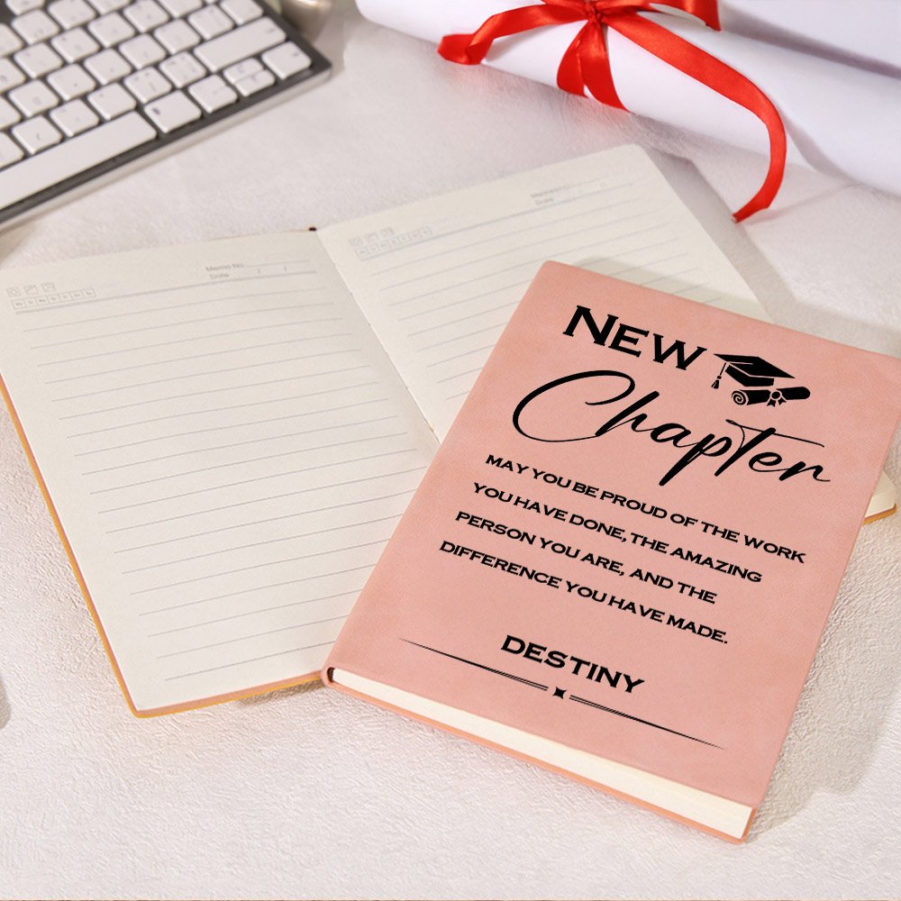 This personalized leather notebook features an inspirational quote that encourages graduates to cherish their hard work and perseverance as they embark on new adventures. Not only is it decorated with a graduation cap design, but you can also customize your name at the bottom of the notebook, making this notebook a keepsake full of memories.