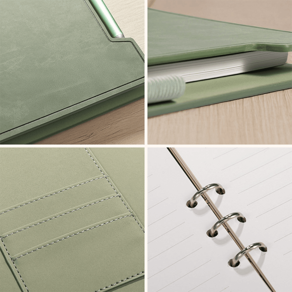 Three different size options of A5/B5/A4 meet your different needs, making it easy to carry in a bag or backpack. Designed with a loose-leaf structure, this notebook allows for easy replacement of pages as needed. The built-in pocket on the cover is perfect for holding business cards or essential items, and it includes an extra pen, making it convenient for jotting down important notes.