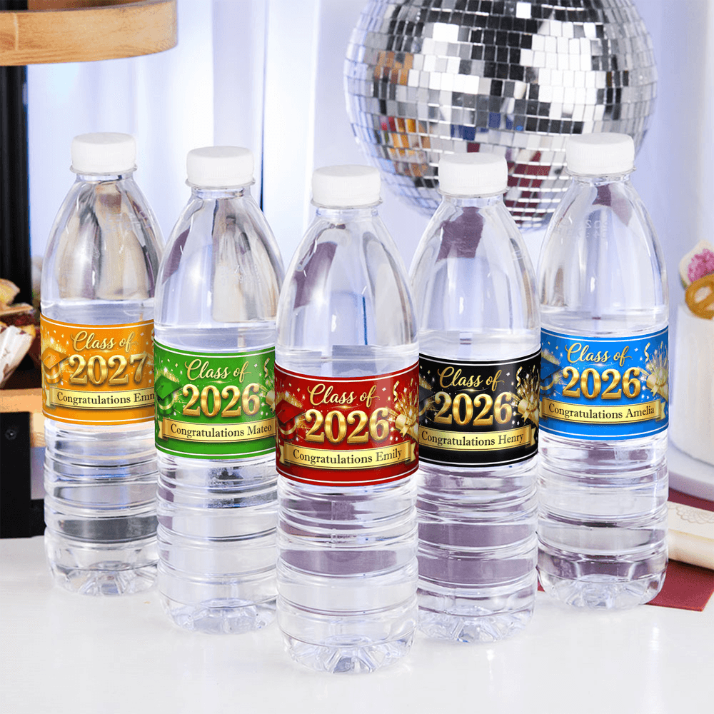 Made of high-quality PVC material, it is tough and durable, waterproof and moisture-proof, suitable for various scenarios such as refrigeration and being placed on ice. It is not easy to fall off or curl, with clear and firm printing, and it can maintain its integrity and beauty even after long-term use. The material is safe and odorless, fits the surface of various water bottles, and is easy to paste without complicated operations, combining beauty and durability to easily meet various usage needs of graduation parties.