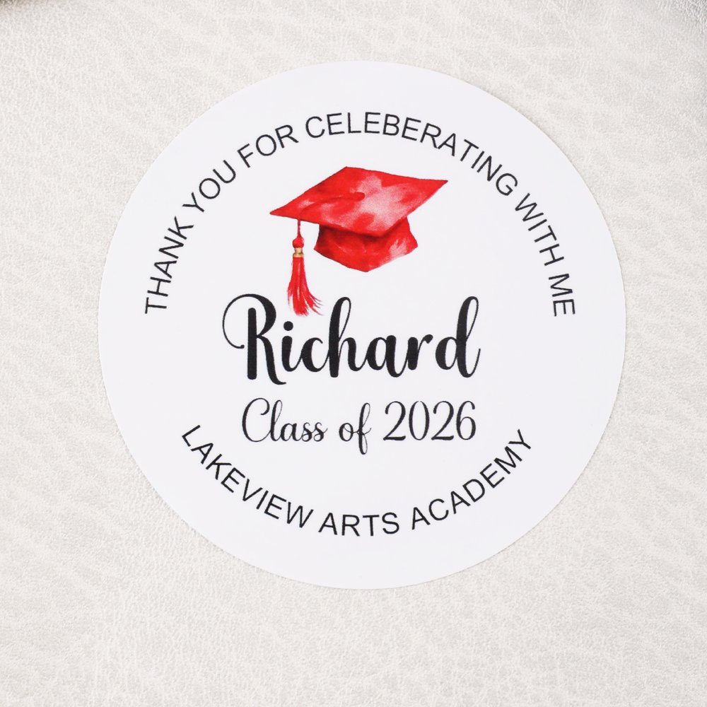This customizable sticker is a thoughtful way to celebrate graduation. It helps your grad party favors stand out while serving as a small keepsake filled with memories. Use it to decorate your own celebration or add a personal detail to gifts for classmates and teachers—a unique way to capture the warmth and joy of this special milestone.