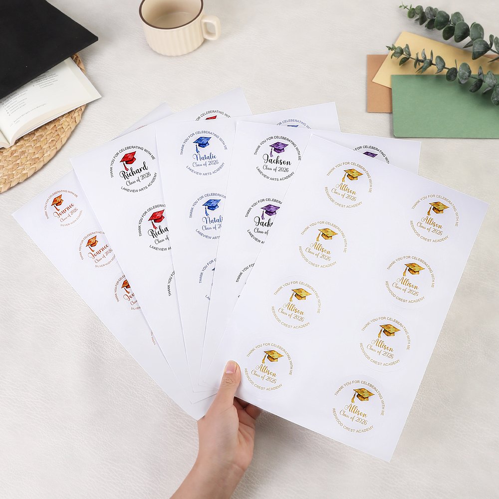 Made from high-quality paper—non-toxic and odorless. Strong adhesive backing makes application easy and ensures a secure hold without peeling. Waterproof, scratch-resistant, and fade-resistant, these stickers stay looking fresh whether used for short-term party decor or long-term keepsake storage—reliable and worry-free for all graduation season needs.