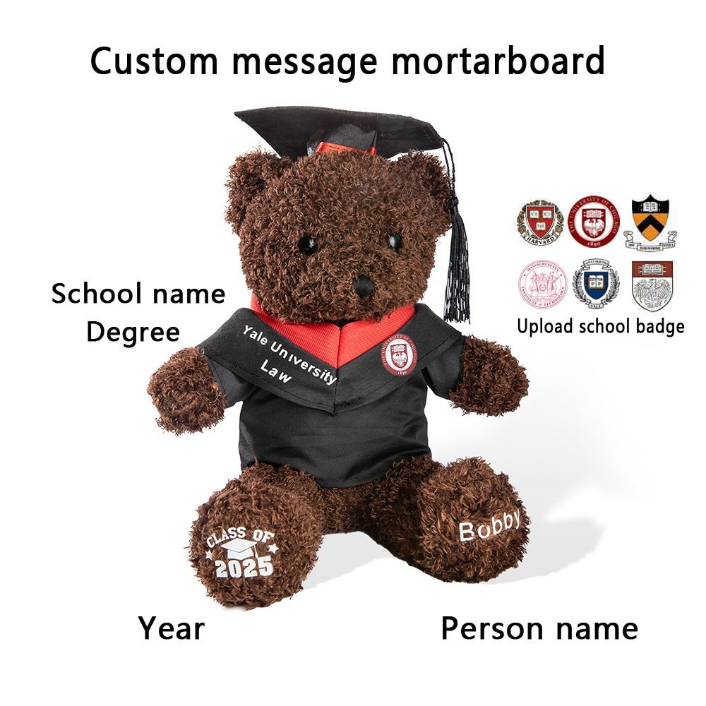 Choose from four different styles of bears to suit individual preferences. Whether it's a bear with foot customization, bachelor collar customization, bachelor cap, or a combination of all three, there's a style to match every graduate's unique personality. You can have the graduate's name elegantly printed on the teddy bear's feet or other visible areas, making it a one-of-a-kind keepsake.