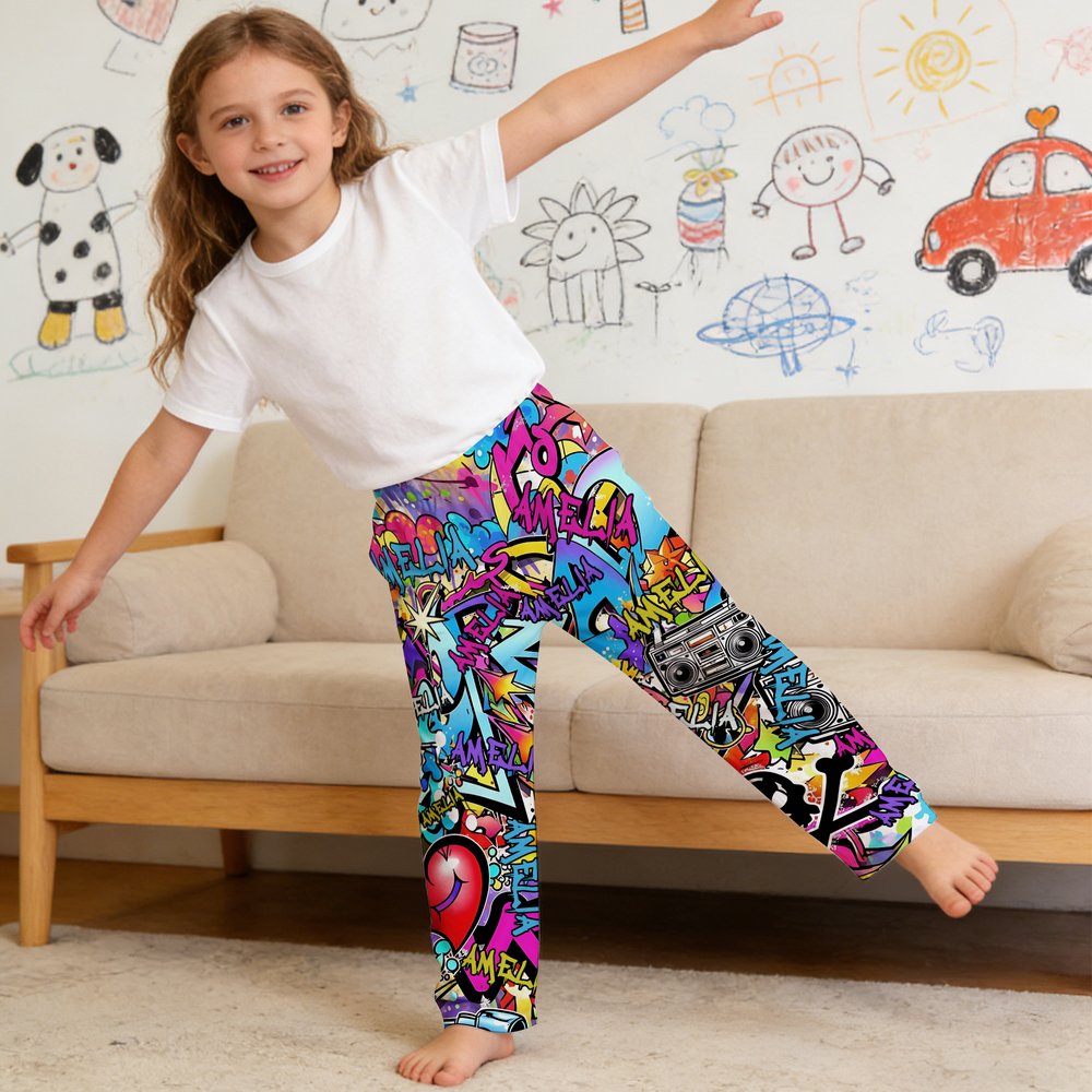 These pajama pants feature a vibrant graffiti style as their core element, showcasing a unique and avant-garde visual appeal. Each pair of pants can be customized with a name, allowing for personal expression that highlights the wearer's charm while conveying heartfelt affection. This distinctive design transforms the pajama pants into a piece of art within home attire, making it suitable for both children and adults to showcase their individuality.