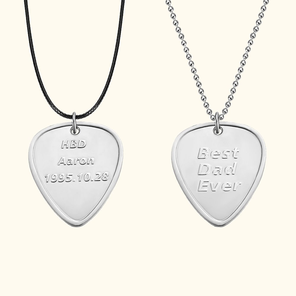 β’ Are you looking for a unique guitar pick necklace? Callie recommends one, made of stainless steel, customized laser engraved guitar pick necklace for you. There are two chain types, leather chain, and bead chain. On the guitar pick, the personalized content can be customized in three lines, and two fonts can be made. The uneven texture of laser engraving is more three-dimensional. Don't worry about the discomfort caused by the weight of the guitar picks. The weight is about 10G, the pick is 1*0.8*0.1inch, which is light and comfortable.