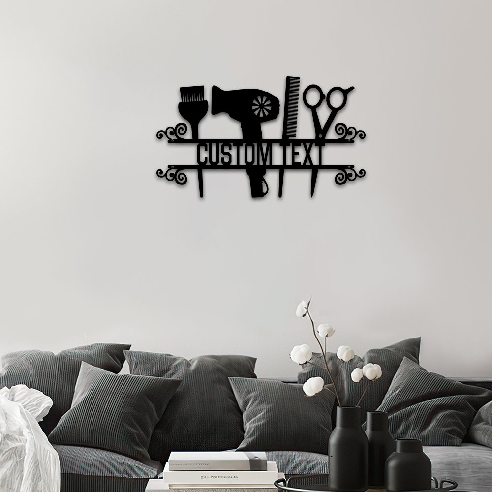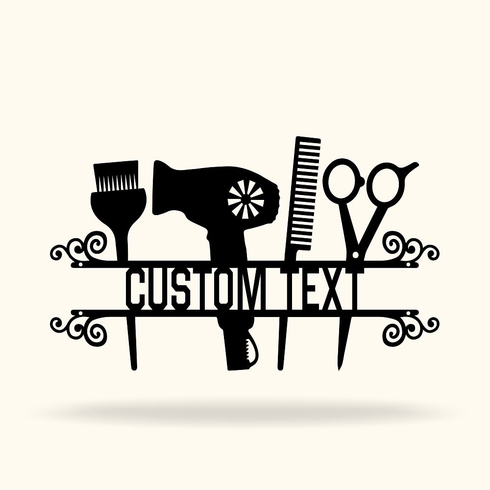 This metal sign focuses on the details, which are full of hairstylist elements. And on the center of the pattern, you could customize your text on it, making it the perfect addition to any hair-centric space.