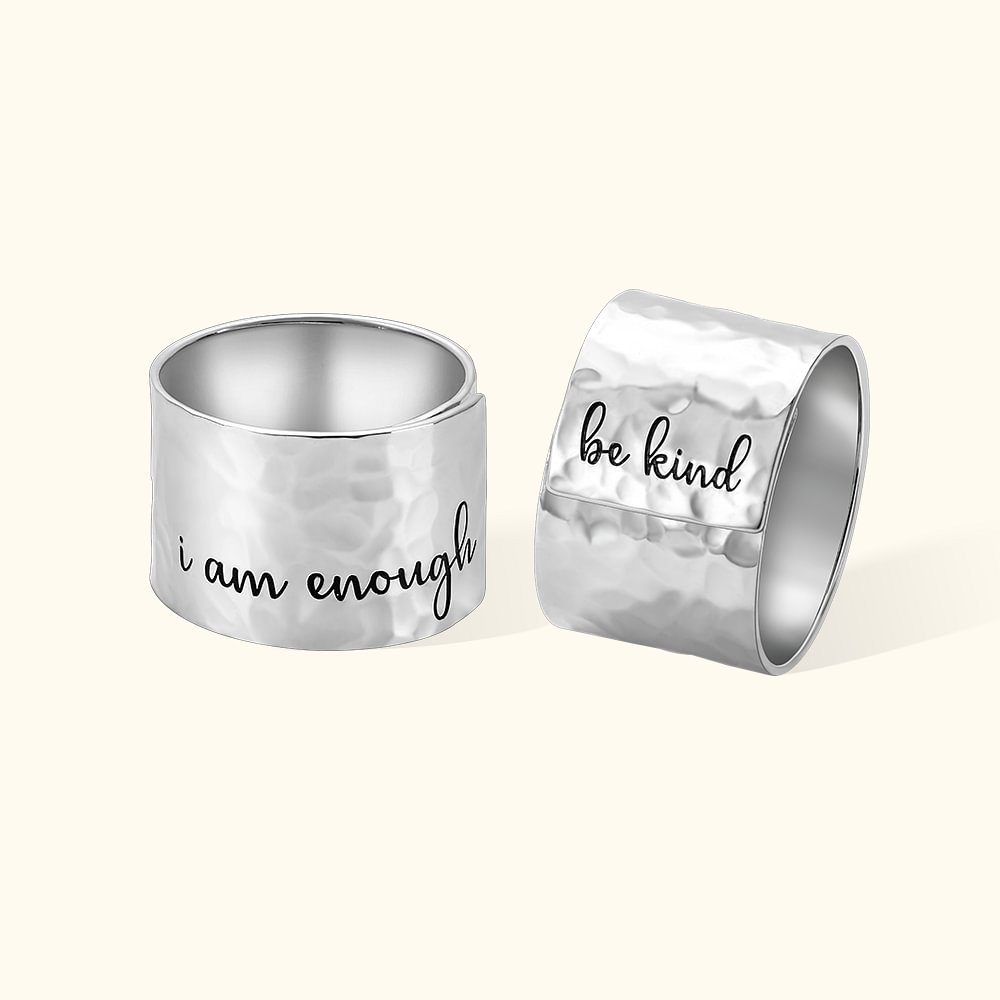 This ring is the perfect example of simple, but elegant. Made of glistening sterling silver plated brass, this piece of jewelry has been carefully hammered to create a shimmering, mesmerizing effect for all that view it. Made with a wide band, a perfect fit for any jewelry lover.