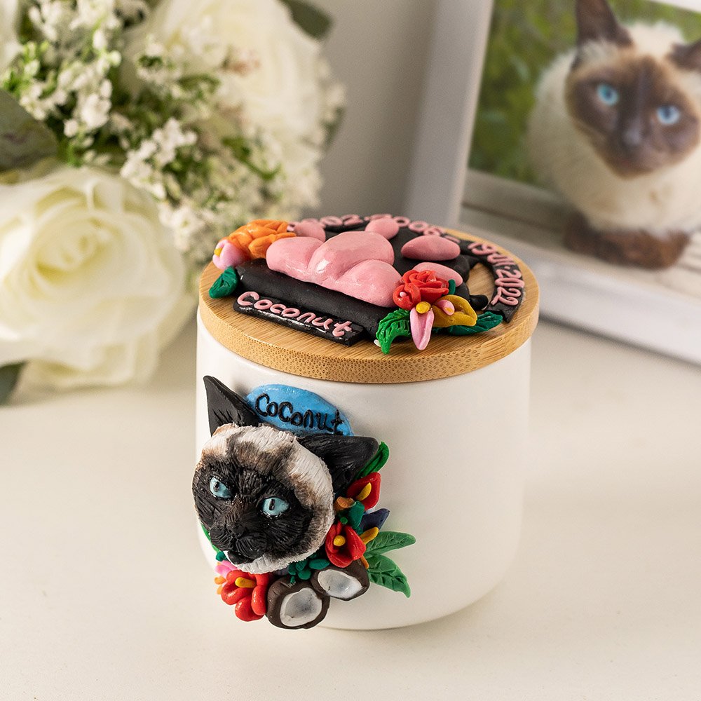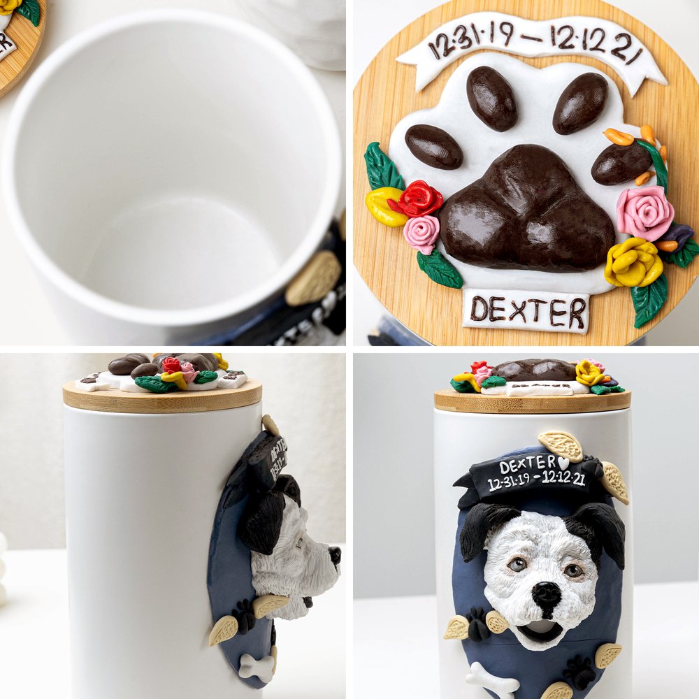 You’ve shared countless funny and loving moments with your beloved pet that will never be forgotten. This handmade pet portrait urn is a beautiful way to honor your pet’s memory and is one way to help deal with sorrow in the loss of your animal friend and keep your memories alive.