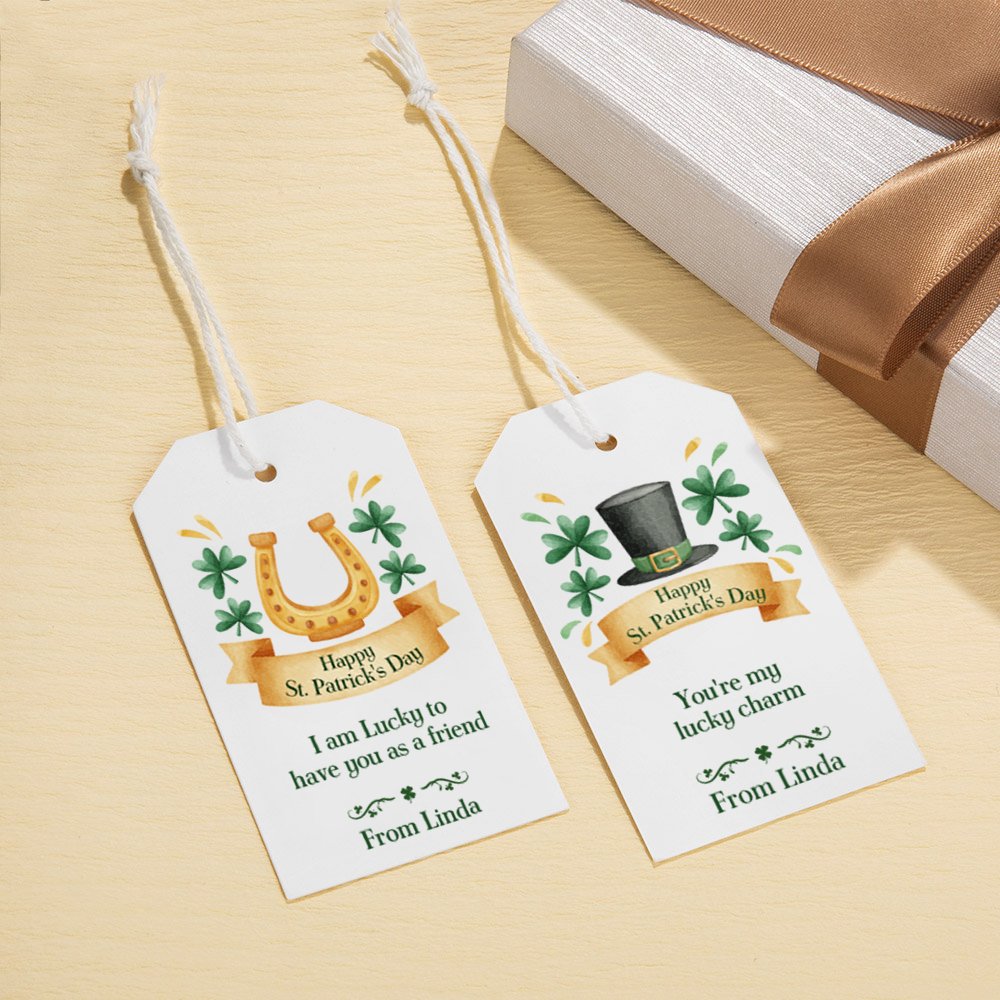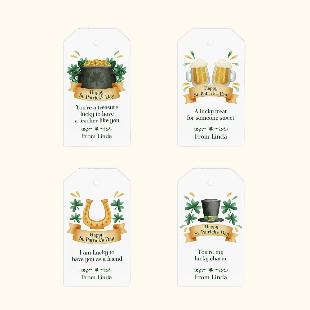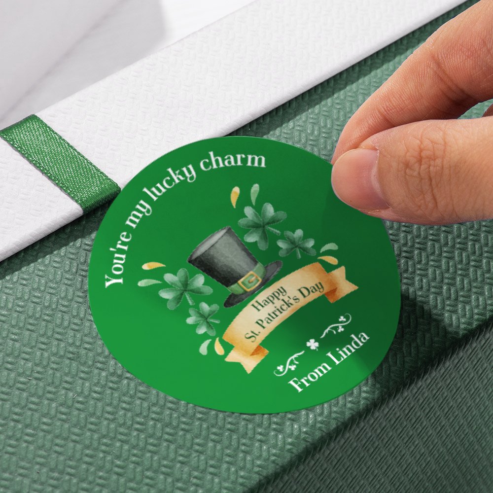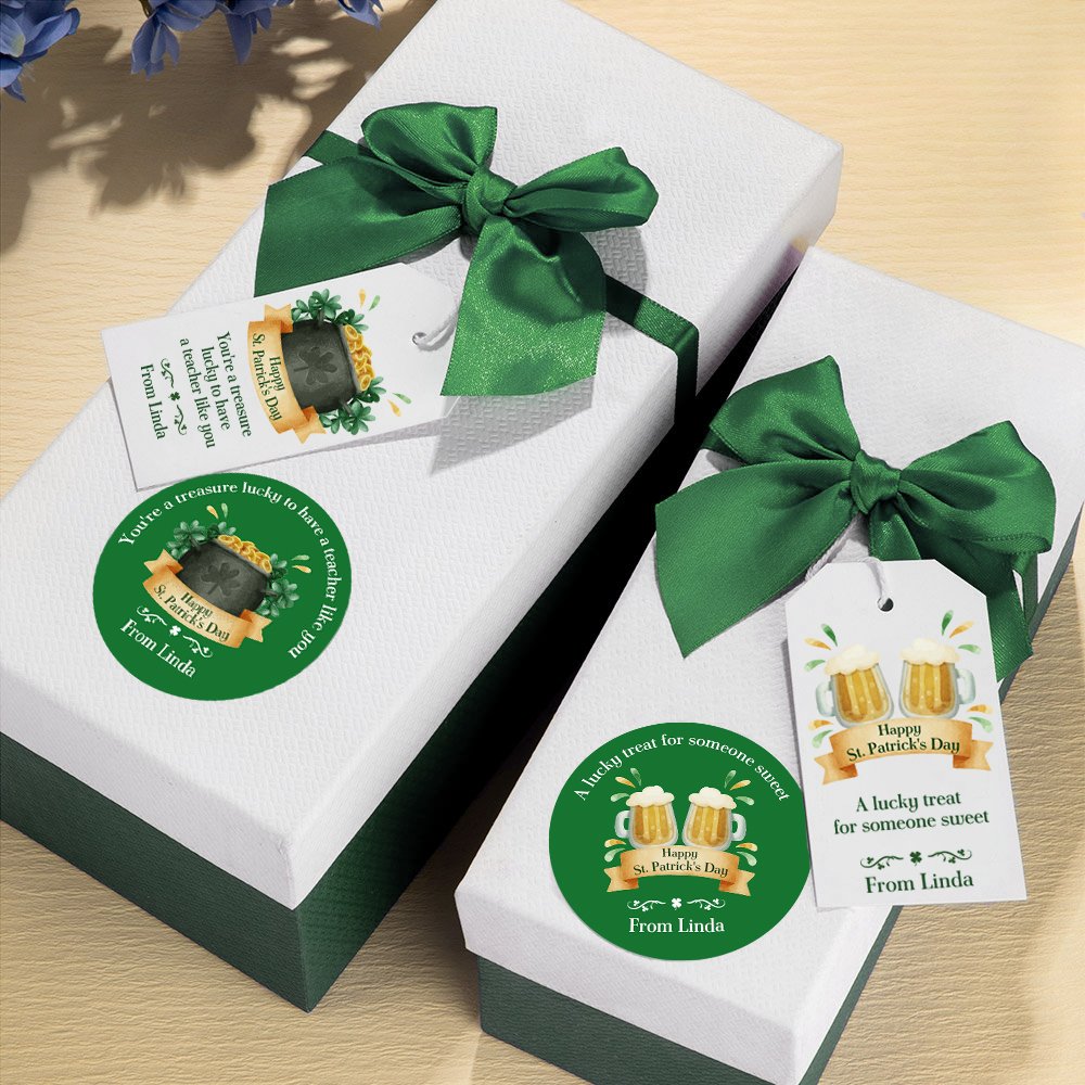 The label has 4 different styles, and the corresponding 4 kinds of stickers, purses, beer, horseshoes, and hats; These four styles all have the meaning of good wishes. Each style bears the pattern of the clover, which is regarded as a symbol of luck, and the bright colors and lovely illustrations will bring joy and laughter. You can use this tag to add a special touch to your St. Patrick's Day meal.