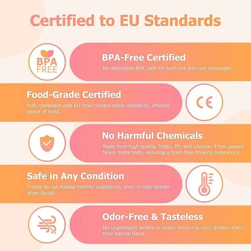Crafted from Tritan for the bottle body, Tritan for the lid, silicone for the sealing ring, and straw, this water bottle is non-toxic and safe for children. Designed specifically for kids, it ensures worry-free hydration with every sip.