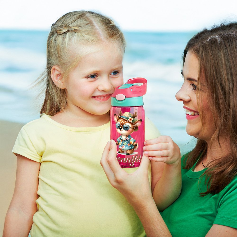This water bottle features a fun Hawaiian beach-themed design, with 38 adorable animal patterns to choose from. Simply add your child's name, and they'll have a unique and memorable gift, creating unforgettable memories for their childhood.