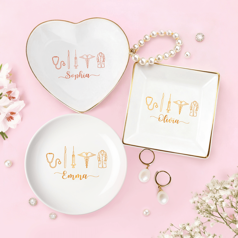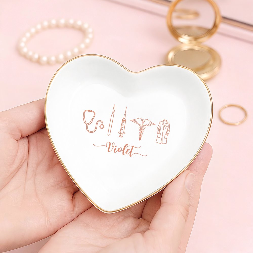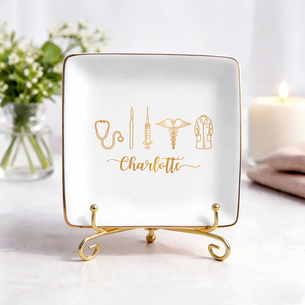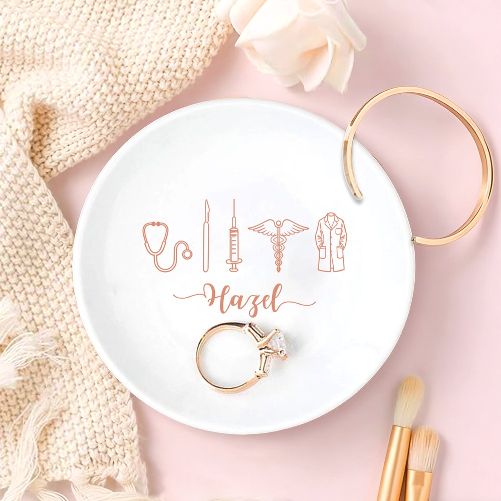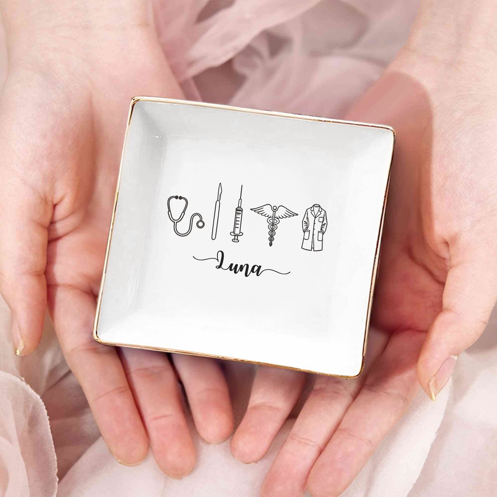 Personalized Healthcare Theme Ceramic Trinket Jewelry Dish with Name Nurses' Day Birthday Gift for Medical Staff