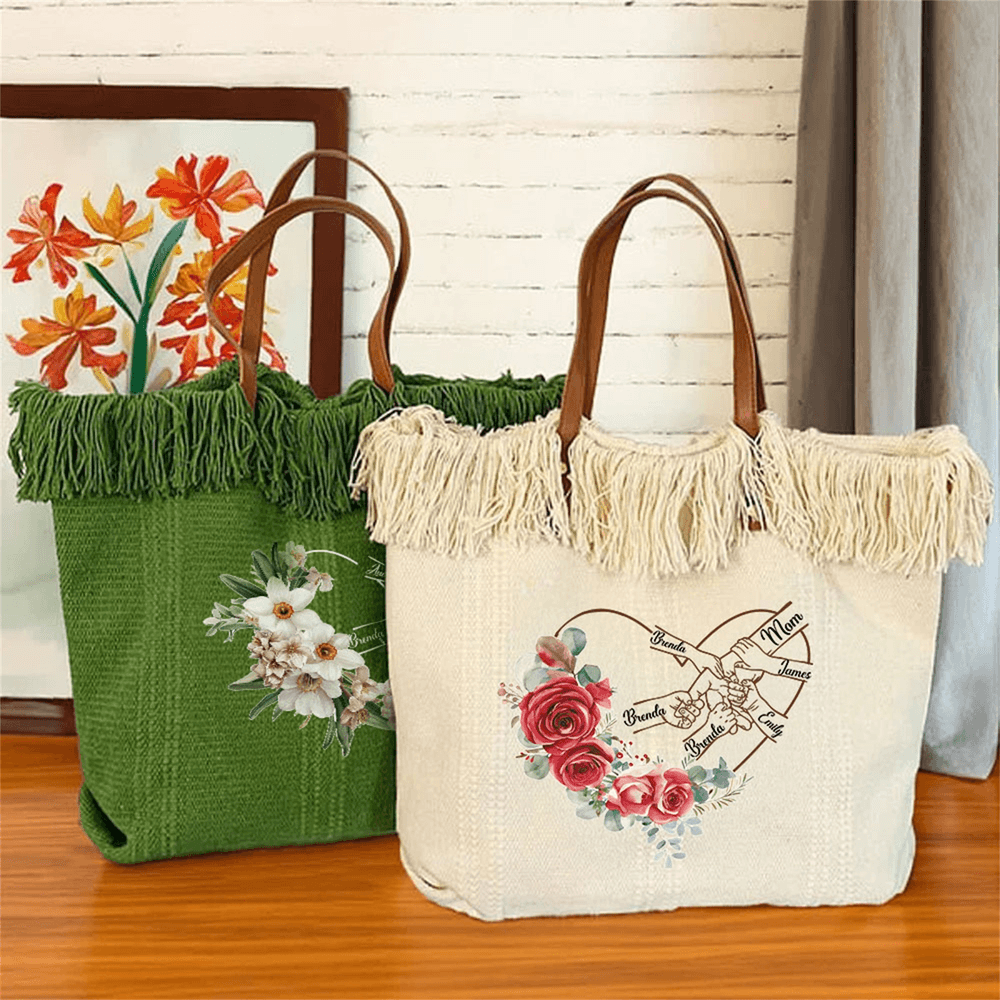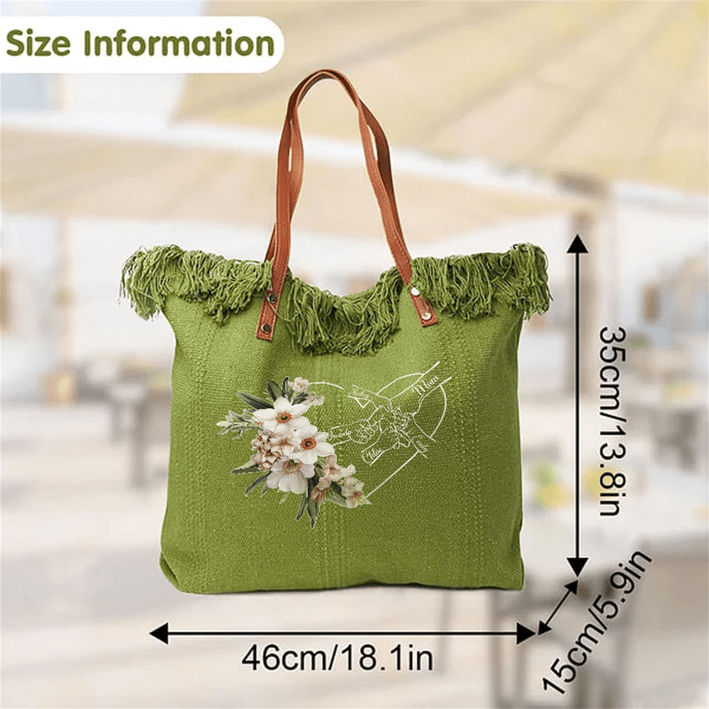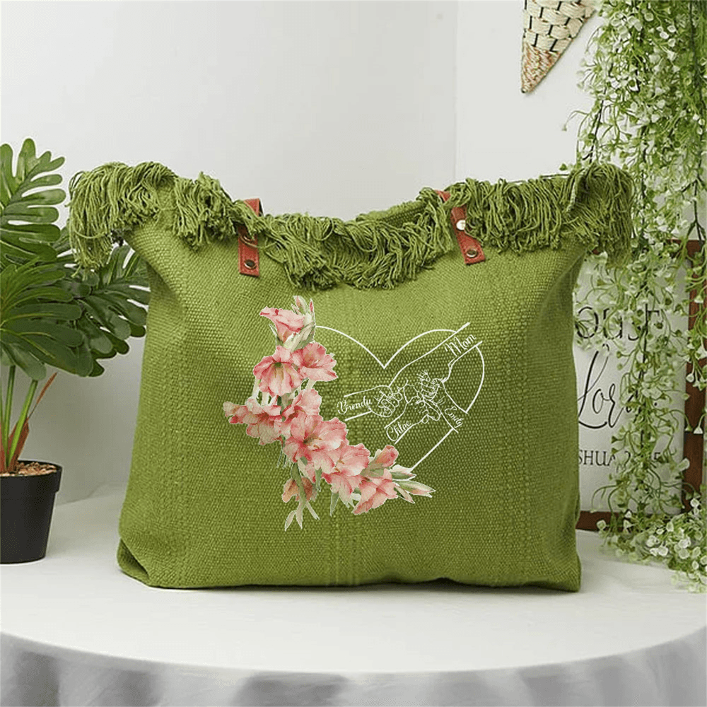 This canvas bag features hearts and birth flowers as its core elements. Also, it supports name customization, elegantly combining your personal flower with your name to create a unique visual highlight, making each bag one-of-a-kind.