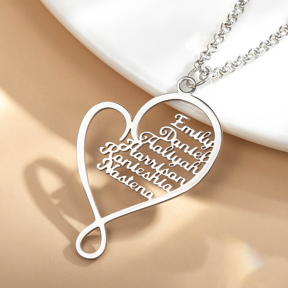 •The heart name necklace by Callie Gift is adorned with one to eight names customized. Featuring delicate and special heart shape lines , the design has an elegant and retro feel.