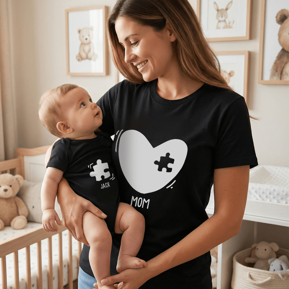 Featuring a unique heart puzzle design, this parent-child set supports personalized text customization for adult titles and baby names. There are 13 color options for adults and 4 charming colors for infants, letting you create a truly one-of-a-kind matching look.