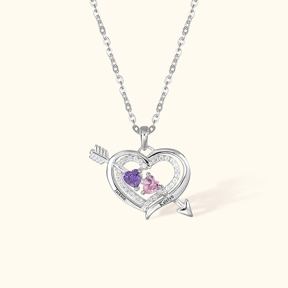 •This arrow love necklace will bring you true love and keep your love eternity. Two hearts stacked together, inside inlaid with full crystals, add a more sparkling tone for the necklace. The two gemstones in the middle can be personalized with your birthstones, meaning the magic Cupid's love arrow will pierce two people’s hearts.