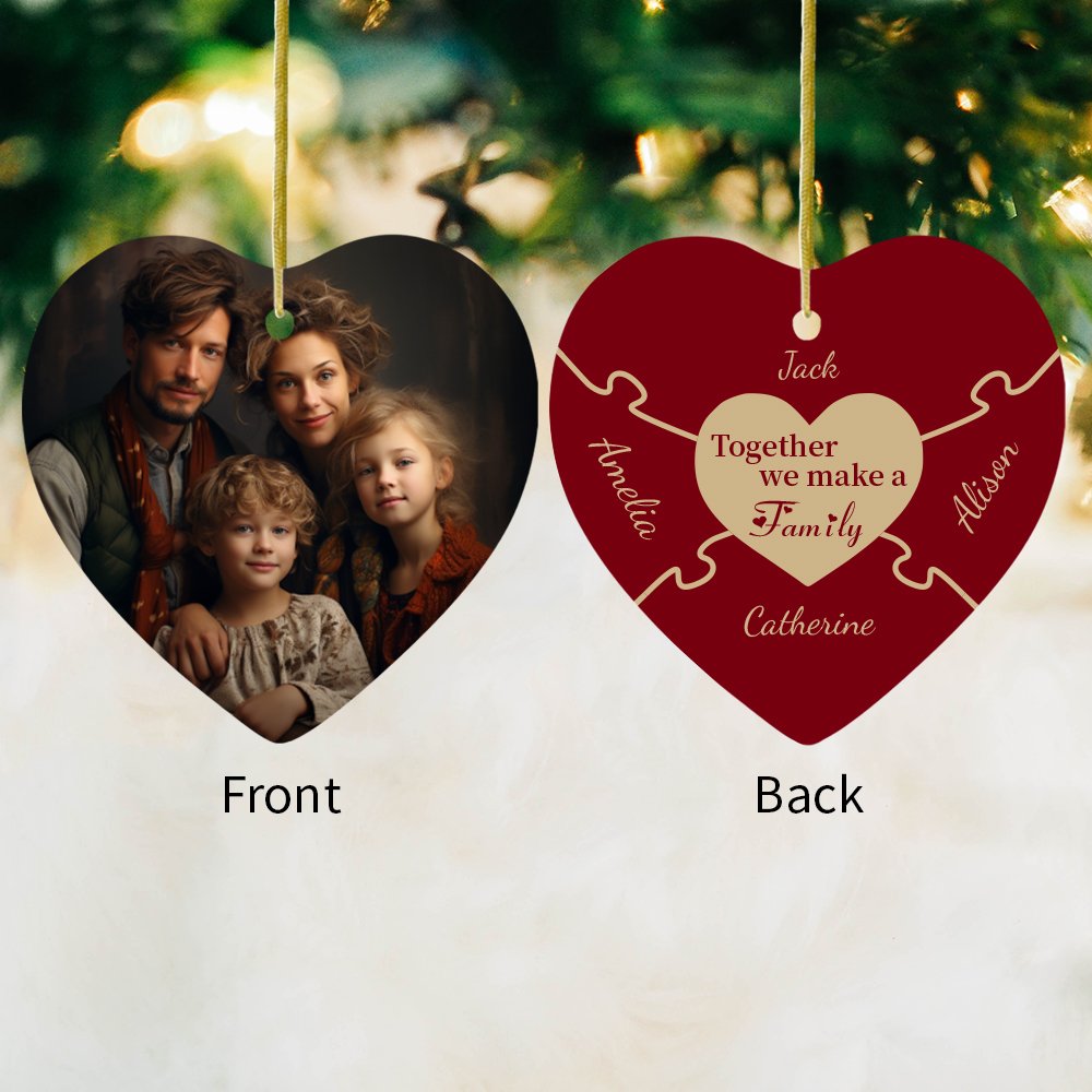 This heart-shaped puzzle ornament is the perfect way to commemorate cherished moments with your loved ones. With its unique design, it allows you to showcase a beautiful family photo and customize each piece with the names of family members, making it an exceptional gift for mothers, grandmothers, or any family members.