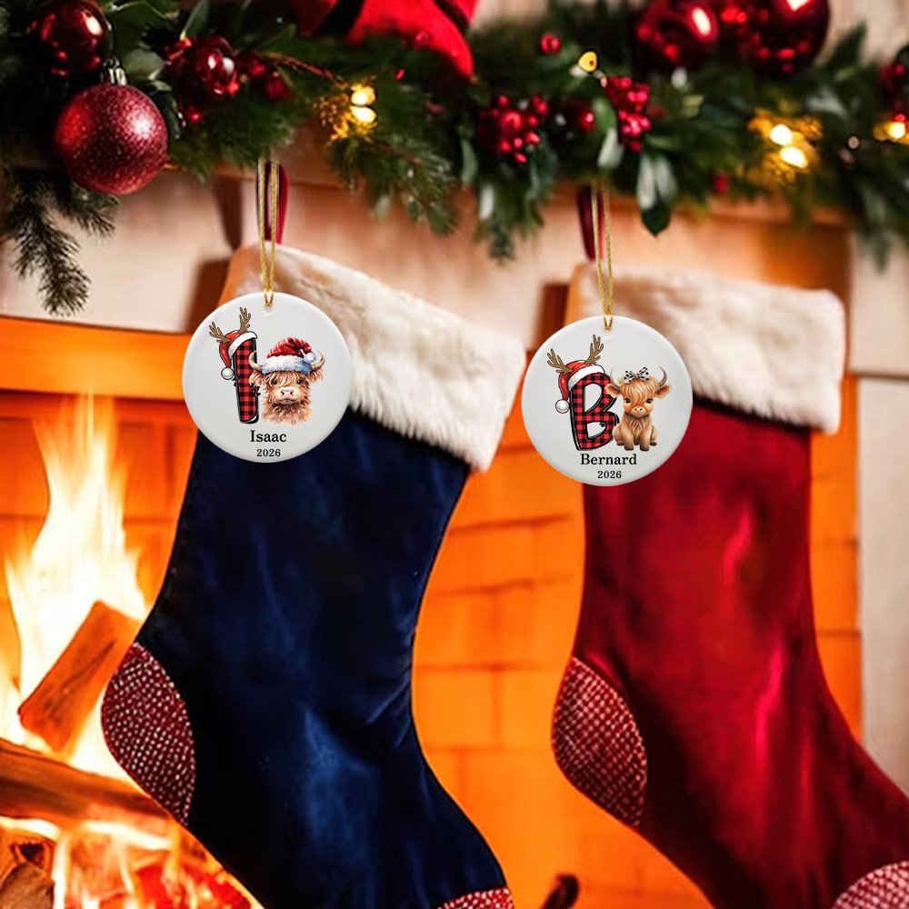 | Feature: | Durable, Easy to Hang, Highland Cow Design, Christmas Theme Initials |