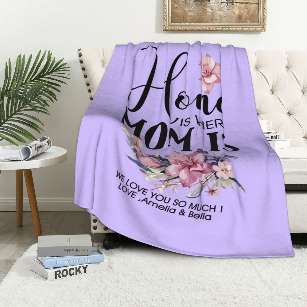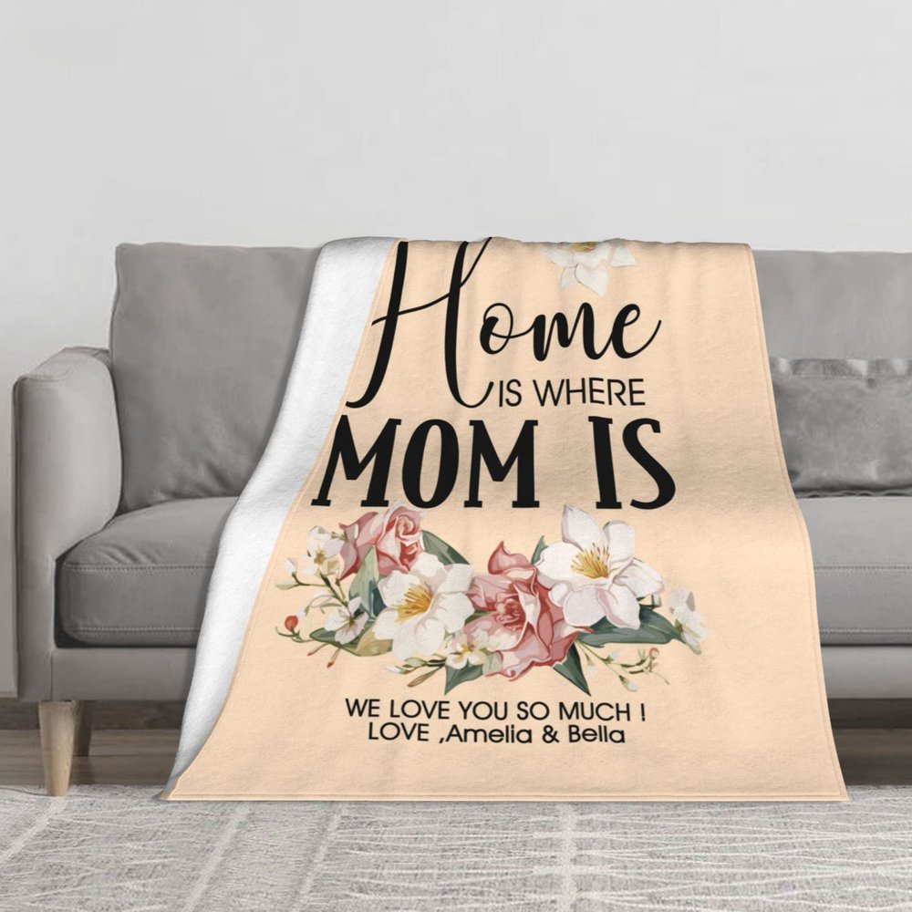 Our personalized birth flower blanket with the text"home is where mom is"is the ultimate expression of love and comfort for your beloved mother. You can customize it with your mom's birth flower and add words that reflect your love and appreciation for your mom, and we'll expertly print them onto the blanket for a truly one-of-a-kind gift.
