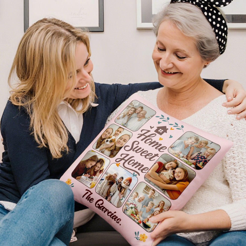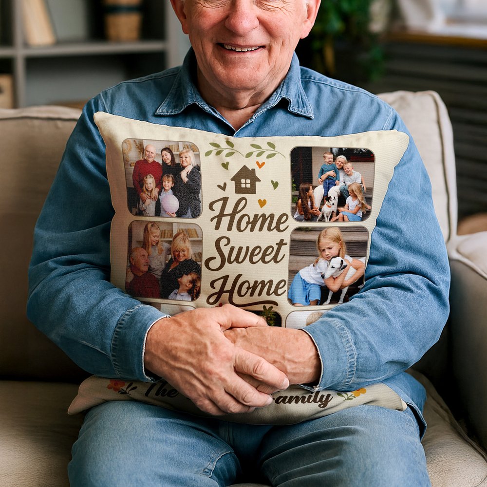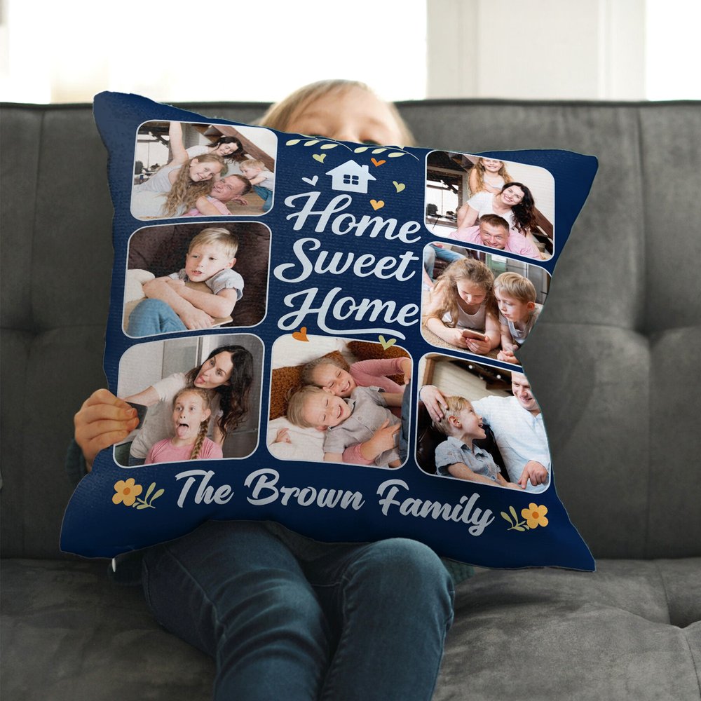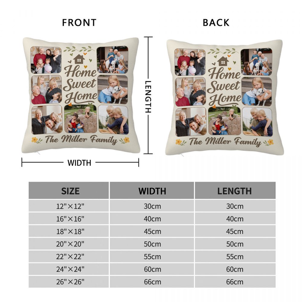 Centered around the theme "Home Sweet Home," this pillow incorporates custom photos, hearts, flowers, and house elements. It can also be printed with personalized text, capturing precious family moments with a warm and personalized touch.